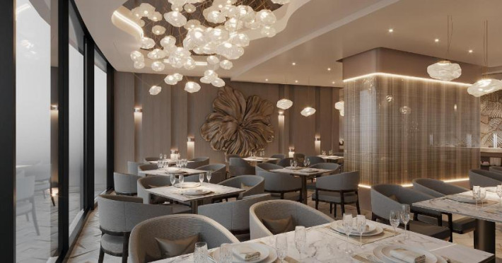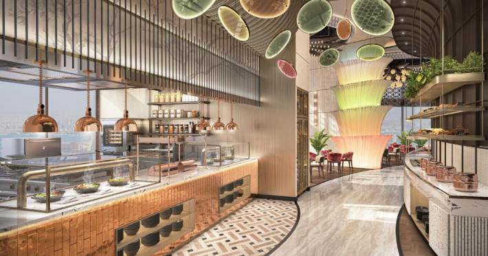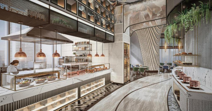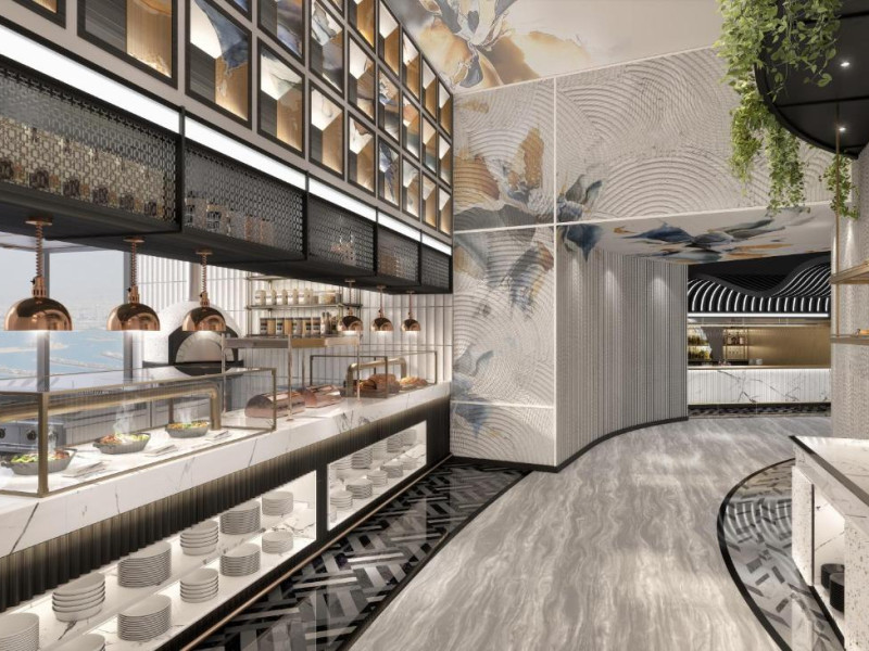 Experiența culinară este definită de restaurantul panoramic situat la inălțime și de lounge-ul exclusivist cu cocktail bar. Poziționarea privilegiată in Dubai Marina oferă acces facil la promenada JBR Walk, Dubai Marina Mall și plaja JBR, toate aflate la cateva minute de mers pe jos.