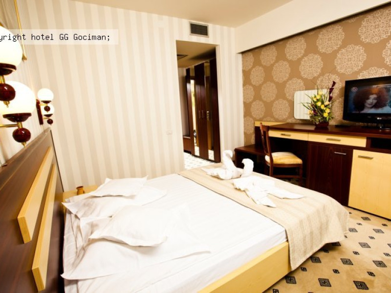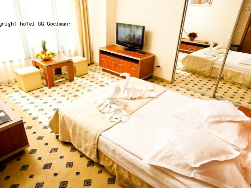Hotel G.G. Gociman este situat in sudul statiunii Mamaia, pe marginea lacului Siutghiol, la doar 300 de metrii de plaja, 1 km departare de Aqua Magic Mamaia si la 1.7 km de Satul de Vacanta Mamaia. La doar 5.7 km de proprietate se afla Delfinariul din Constanta si la 10 km departare, Cazinoul si faleza orasului Constanta. Cotat la categoria de 4 stele, Hotel G G Gociman, ofera oaspetilor sai posibilitatea de a alege intre camere dumble cu pat matrimonial sau doua paturi, apartamente junior si apartamente prezidentiale, toate fiind mobilate ultramodern, dotate cu aer conditionat, minibar, seif, uscator de par si baie privata. Wi-Fi-ul este gratuit in toata locatia Hotel G G Gociman. Oaspetii cazati la Hotel G G Gociman beneficiaza de mic dejun gratuit, servit in sala de mese de pe proprietate. De asemenea, pot beneficia de acces la piscina, masaj, sauna, sala de tenis si pot inchiria echipamente sportive. Turistii beneficiaza de parcare gratuita la Hotel G G Gociman.