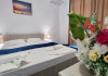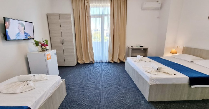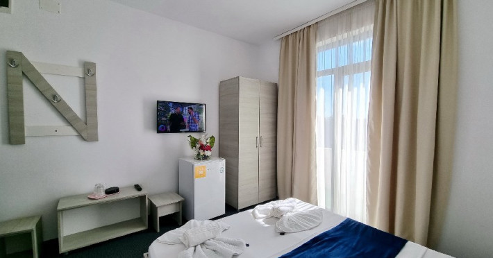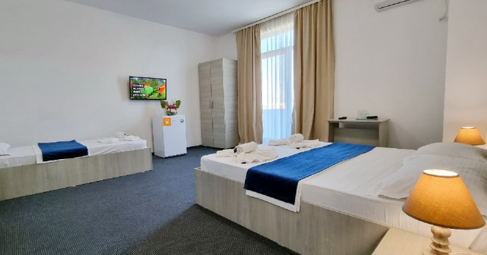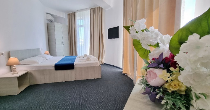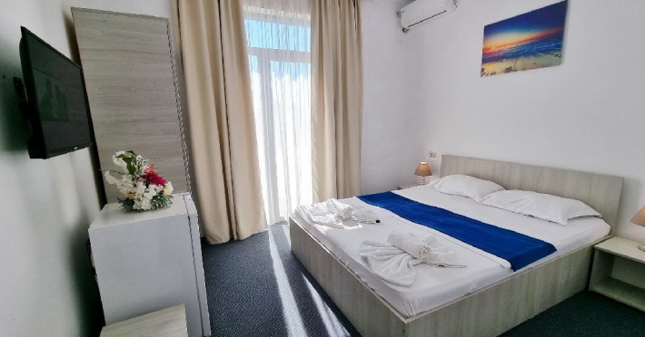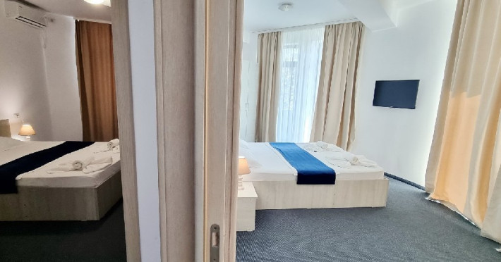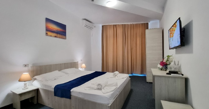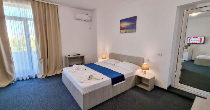 Camera dubla standard este dotata cu televizor LCD, minibar, baie proprie cu dus, aer conditionat, internet wireless. Camerele fara balcon sunt situate la parter si etajul 1. Camerele cu balcon sunt situate la etajele 2 si 3. Camera dubla economy este putin mai mica, si este dotata cu pat matrimonial 1.40/2 m, televizor LCD, minibar, baie proprie cu dus, aer conditionat, internet wireless. Camerele economy nu au balcon. Camerele family sunt dotate cu pat matrimonial si un pat de 1 persoana, televizor LCD, baie proprie cu dus, aer conditionat, internet wireless. Camerele fara balcon sunt situate la parter si etajul 1 si cate o camera la etajele 2 si 3. Camerele cu balcon sunt situate la etajele 2 si 3. Apartamentele sunt decomandate, si formate din 2 camere duble cu paturi matrimoniale, hol si baie. Sunt dotate cu televizor LCD in fiecare camera, minibar, baie proprie cu dus, aer conditionat, internet wireless.