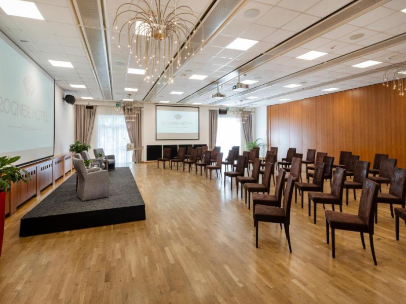 Bucurandu-se de o locatie excelentă pe bulevardul principal din inima orasului Tirana, Hotelul Rogner se află la mică distantă de mers pe jos de principalele institutii guvernamentale si sediul central al unor companii de afaceri. Hotelul este inconjurat de 3 ha de grădini mediteraneene si oferă acces gratuit la internet WiFi de mare viteză in toate zonele.