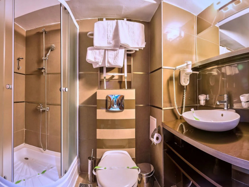 Located in Sinaia, Hotel Rina Sinaia is a 2-minute drive from Sinaia Monastery and 9 minutes from Peles Castle. This hotel is 5.3 mi (8.5 km) from Cantacuzino Castle and 13.9 mi (22.4 km) from Predeal Ski Resort.Located in Sinaia, Hotel Rina Sinaia is a 2-minute drive from Sinaia Monastery and 9 minutes from Peles Castle. This hotel is 5.3 mi (8.5 km) from Cantacuzino Castle and 13.9 mi (22.4 km) from Predeal Ski Resort.Make yourself at home in one of the 246 air-conditioned rooms featuring minibars and flat-screen televisions. Complimentary wireless Internet access is available to keep you connected. Private bathrooms with showers feature complimentary toiletries and hair dryers. Conveniences include phones and desks, and housekeeping is provided daily.Make yourself at home in one of the 246 air-conditioned rooms featuring minibars and flat-screen televisions. Complimentary wireless Internet access is available to keep you connected. Private bathrooms with showers feature complimentary toiletries and hair dryers. Conveniences include phones and desks, and housekeeping is provided daily.Be sure to enjoy recreational amenities, including an indoor pool, a spa tub, and a sauna. Additional amenities at this hotel include complimentary wireless Internet access, ski storage, and a hair salon.Be sure to enjoy recreational amenities, including an indoor pool, a spa tub, and a sauna. Additional amenities at this hotel include complimentary wireless Internet access, ski storage, and a hair salon.Grab a bite to eat at Restaurant Piaza, a restaurant which features a bar, or stay in and take advantage of the room service (during limited hours). A complimentary buffet breakfast is served daily from 7 AM to 10:30 AM.Grab a bite to eat at Restaurant Piaza, a restaurant which features a bar, or stay in and take advantage of the room service (during limited hours). A complimentary buffet breakfast is served daily from 7 AM to 10:30 AM.Free self parking is available onsite.Free self parking is available onsite..1 EUR not included 80 per guest per night.EUR not included 4 per guest per night on side.EUR airport not included 90 one way**Know Before You Go**Reservations are required for massage services. Reservations can be made by contacting the hotel prior to arrival, using the contact information on the booking confirmation.**Mandatory Fees and Taxes**Youll be asked to pay the following charges at the property: A tax is imposed by the city: EUR 1.29 per person, per night. This tax does not apply to children under 18 years of age.Guests have to pay extra local tax that is 2% of accomadation rate. We have included all charges provided to us by the property. However, charges can vary, for example, based on length of stay or the room you book.