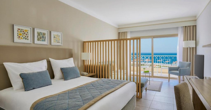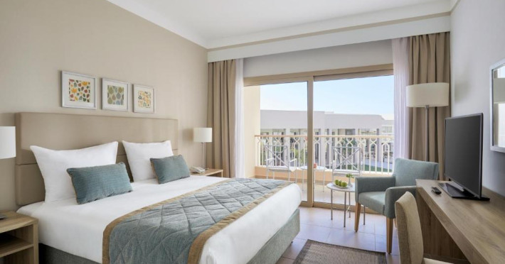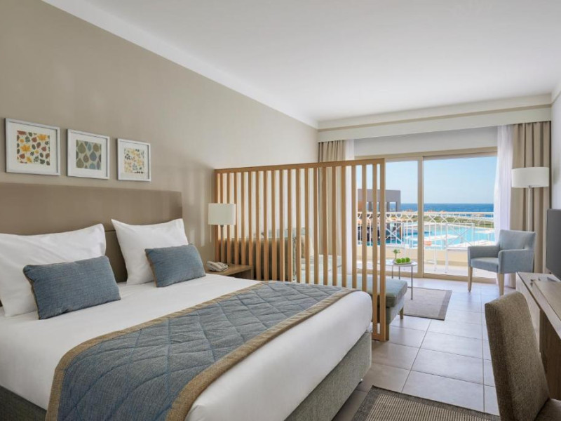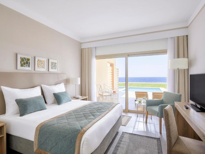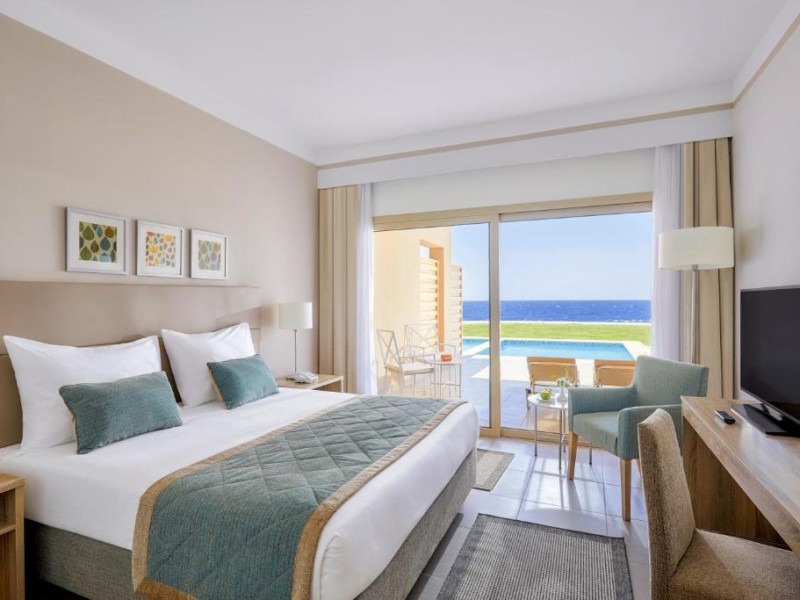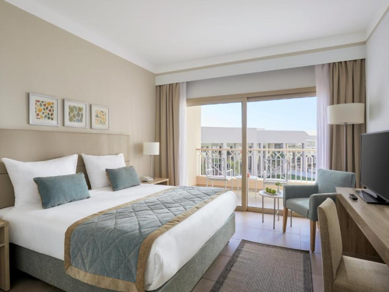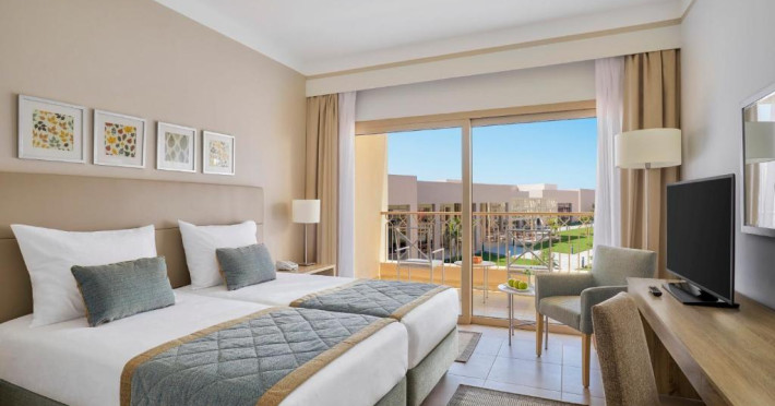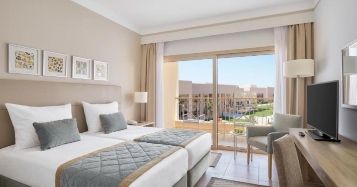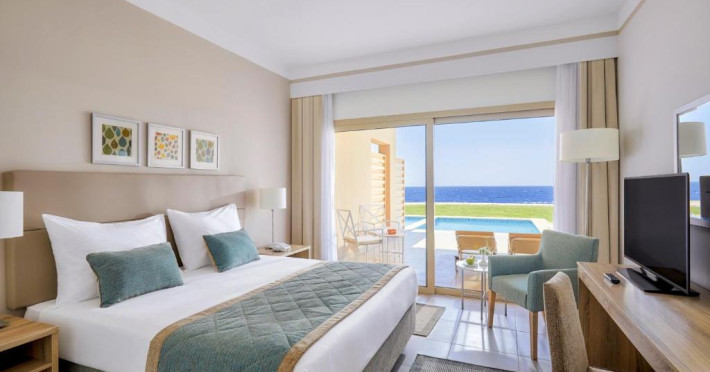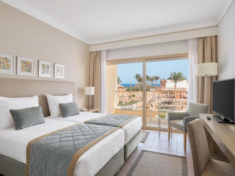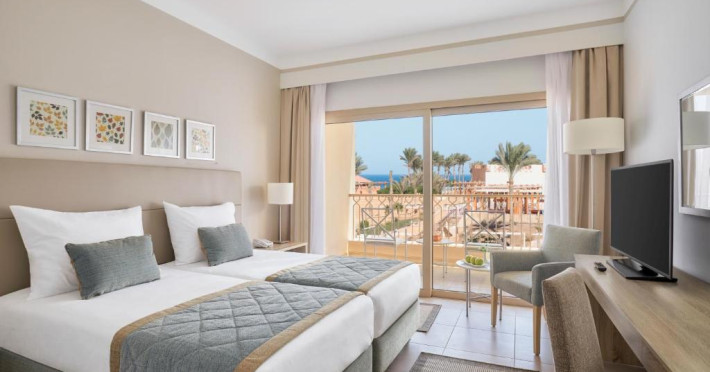 Camerele elegante sunt decorate in nuanțe calde, mediteraneene și sunt dotate cu balcon sau terasă, multe dintre ele oferind priveliști spectaculoase spre Marea Roșie. Complexul dispune de mai multe piscine, inclusiv piscine pentru copii cu tobogane acvatice.