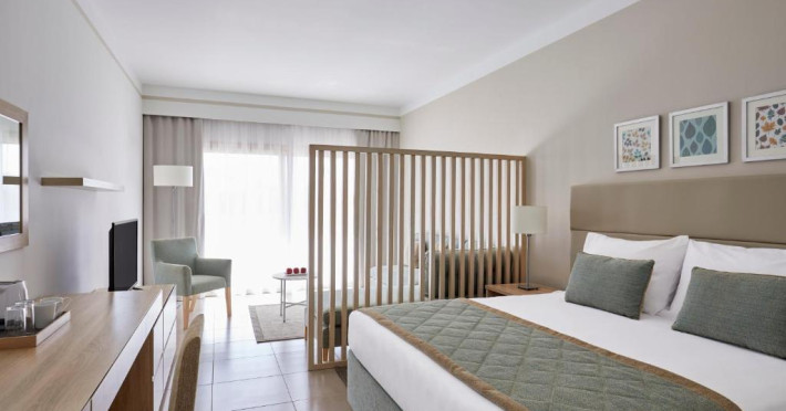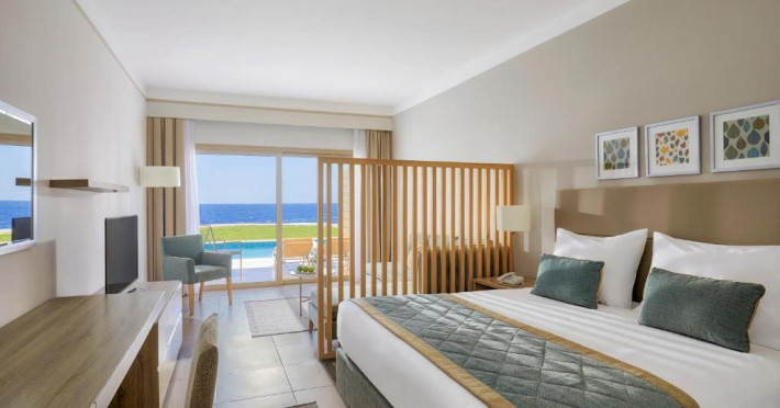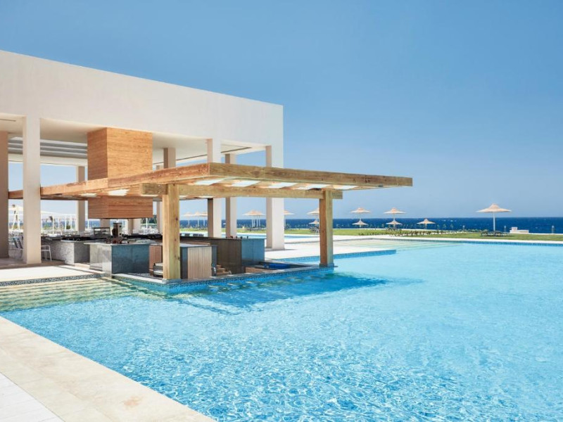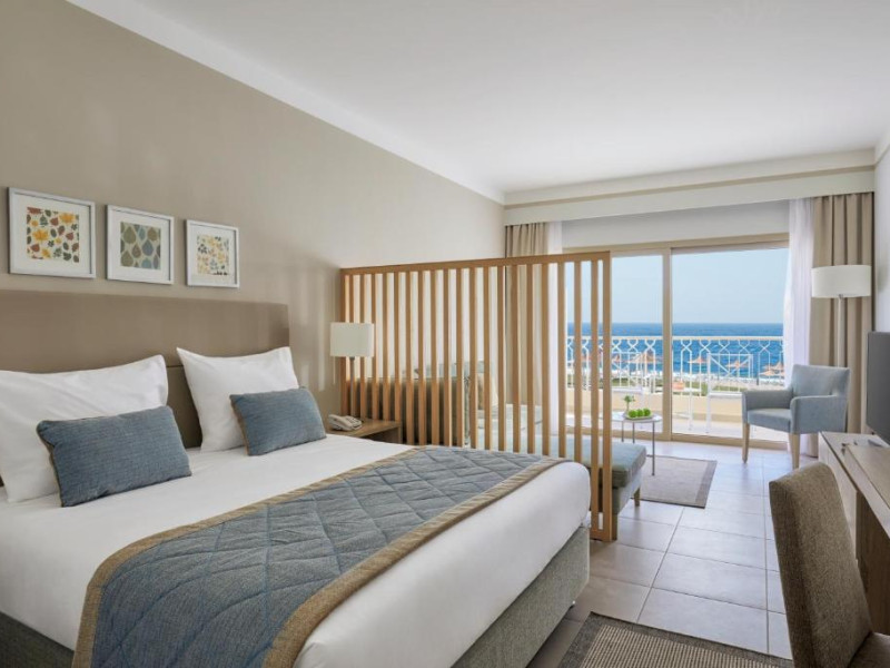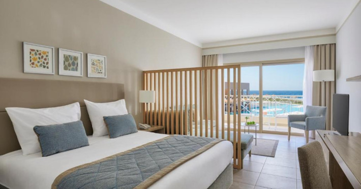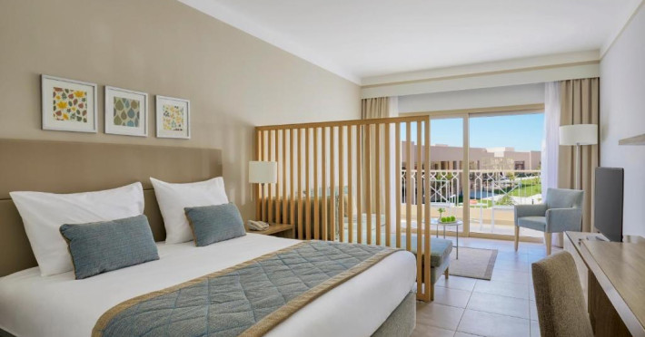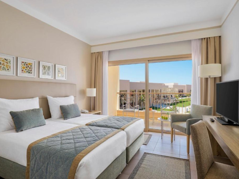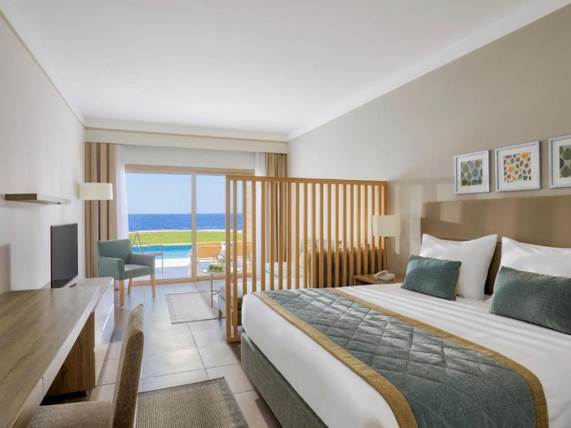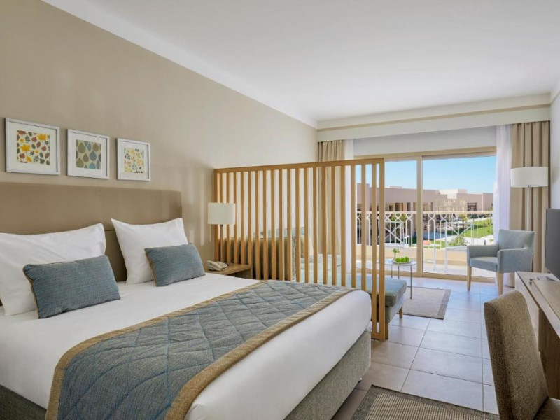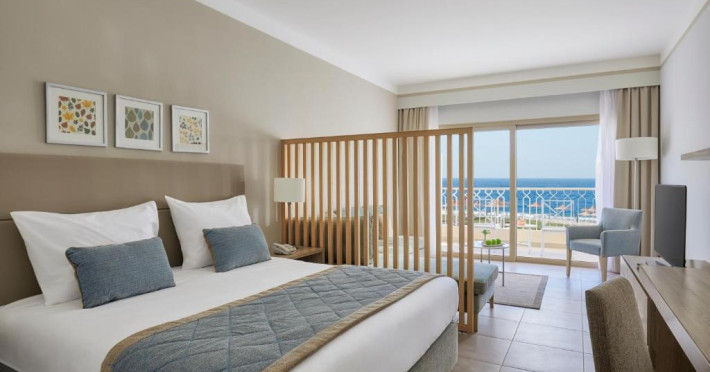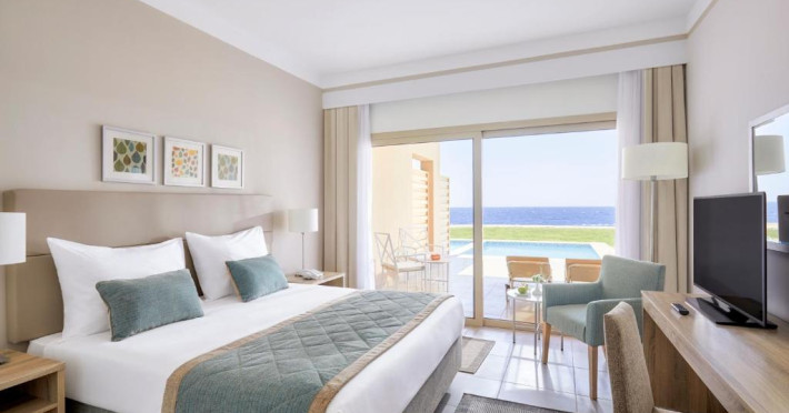 Camerele elegante sunt decorate in nuanțe calde, mediteraneene și sunt dotate cu balcon sau terasă, multe dintre ele oferind priveliști spectaculoase spre Marea Roșie. Complexul dispune de mai multe piscine, inclusiv piscine pentru copii cu tobogane acvatice.