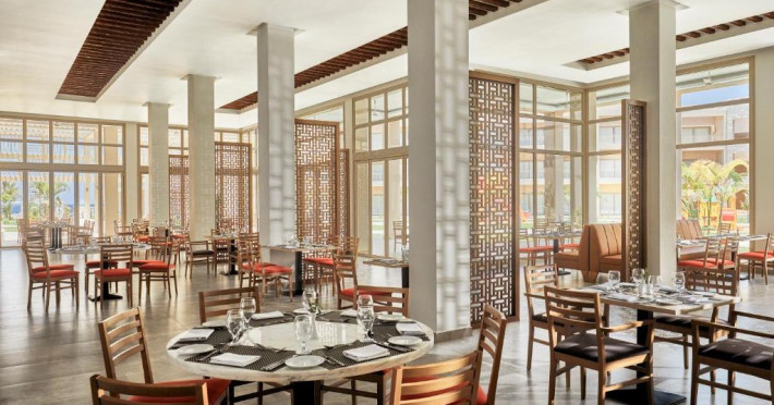 Resortul excelează prin facilitățile sale de dining, cu restaurante à la carte și bufet care servesc preparate internaționale și locale. Pentru relaxare, oaspeții au la dispoziție un centru spa modern și un centru de diving care organizează excursii pentru explorarea recifelor de corali din apropiere.