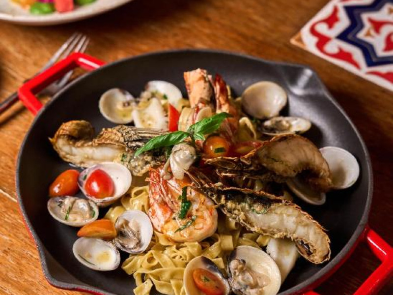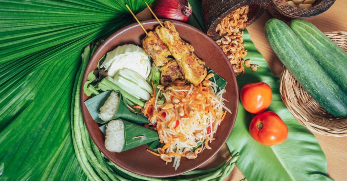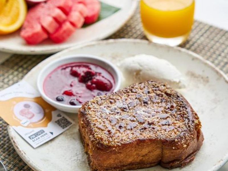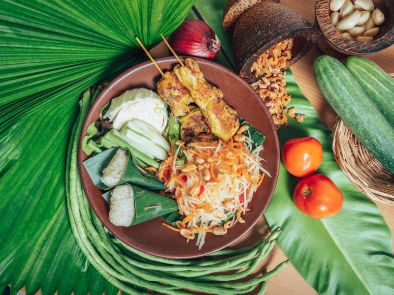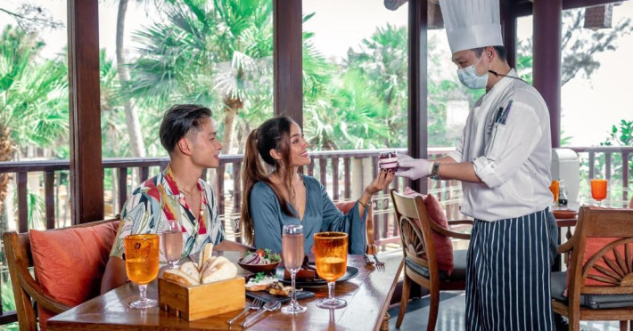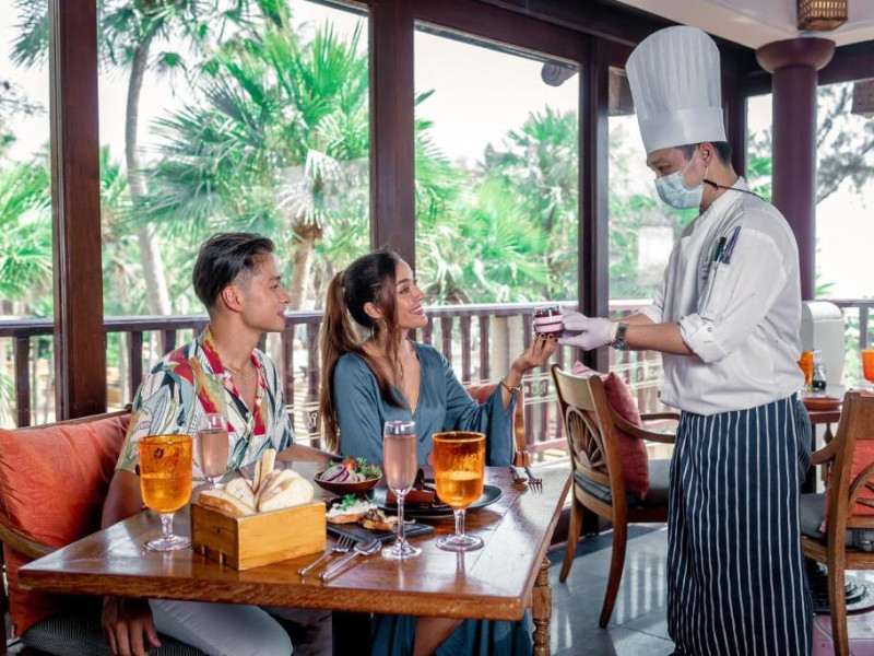 Micul dejun tip bufet este servit la Marriott Café, care oferă un meniu cu preparate internaționale pe tot parcursul zilei. Oaspeții pot savura produse de patiserie si sandvișuri gourmet la Siam Deli. Complexul pune la dispoziție restaurante care servesc preparate thailandeze, japoneze, italienești, dar si la grătar. Barurile de la fiecare piscină a complexului oferă gustări și băuturi.