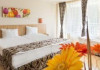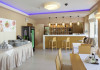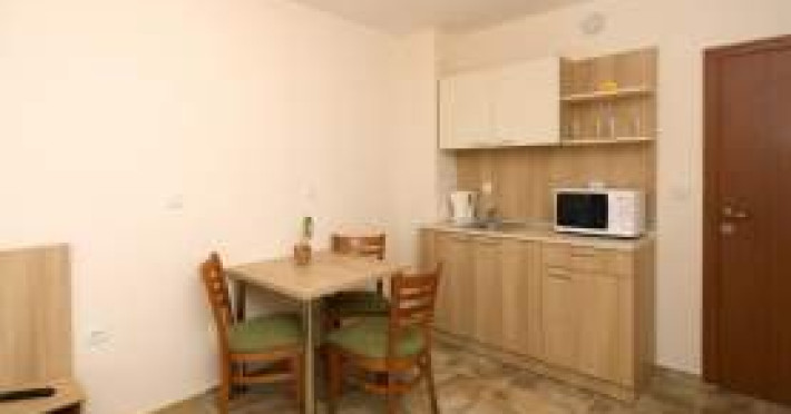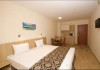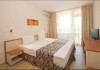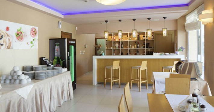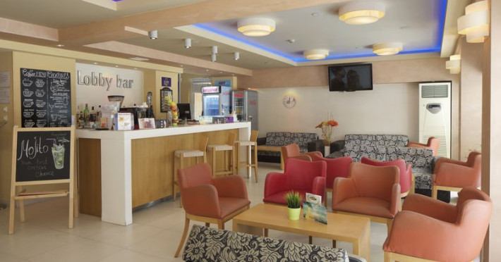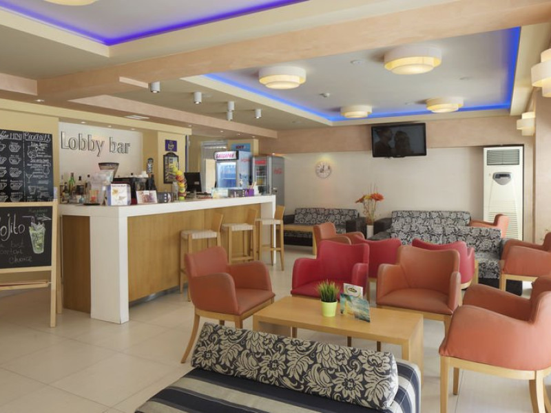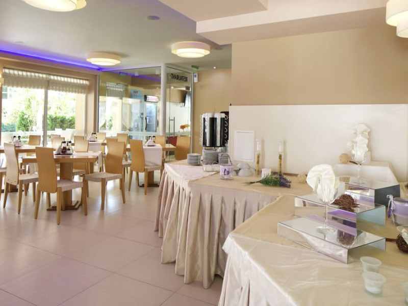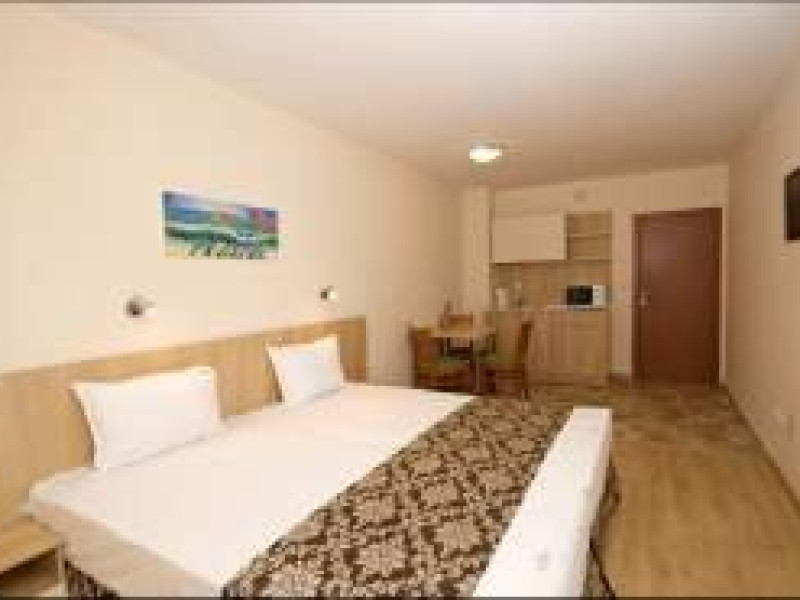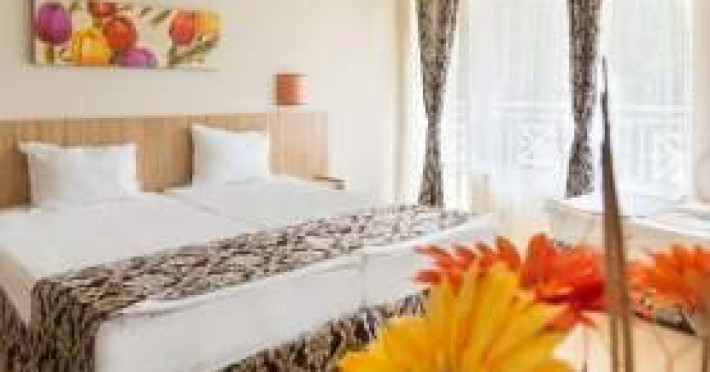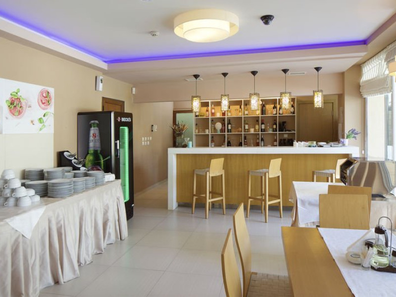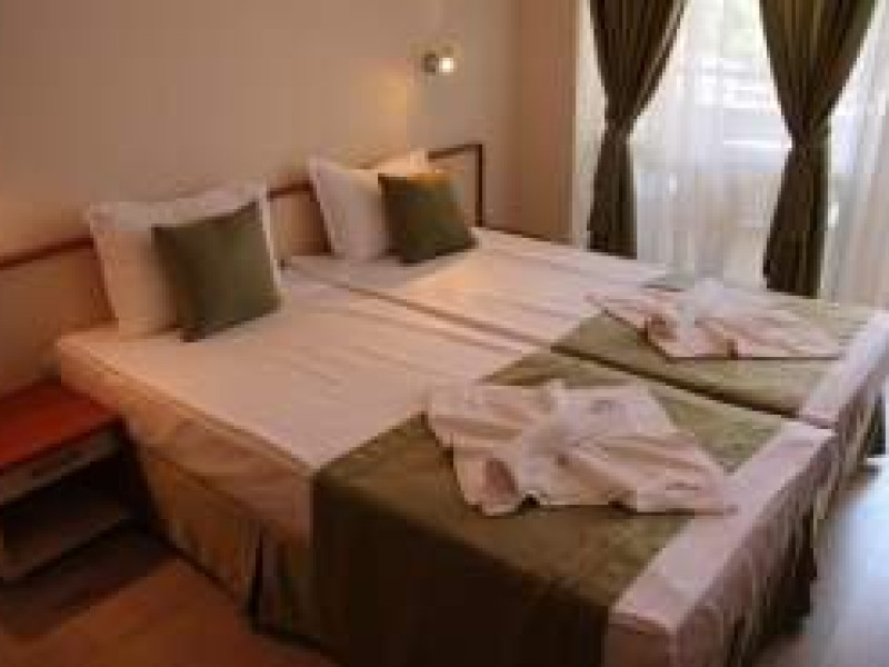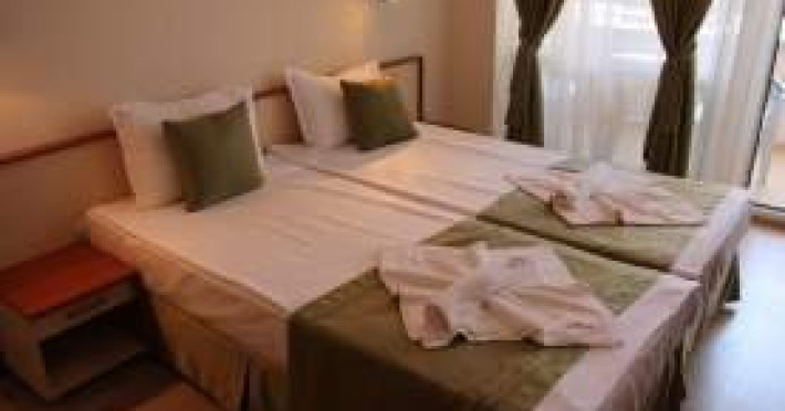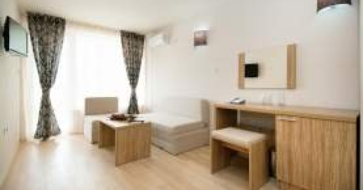 Localizare: este situat la 120 m de plaja, in a doua linie de hoteluri. Capacitate: o cladire de 5 etaje cu 40 camere duble, 4 apartamente 1 dormitor Facilitati hotel: piscina exterioara, aerobic (yoga, exercitii de respiratie), gimnastica acvatica, cabinet medical, masaj, restaurant, bar, seif la receptie (cca 2 eur / zi), lift, internet wireless, birou rent-a-car, biliard, jocuri mecanice, zona de parc si gradini, parcare. Camerele duble (25 mp): doua paturi, aer conditionat, frigider, TV, telefon, baie cu dus, uscator de par, stand uscator de rufe, balcon Apartament 1 dormitor (40mp): pat matrimonial in dormitor, canapea extensibila in living, usa intermediara intre dormitor si living, aer conditionat, frigider, masa de calcat, TV, telefon, baie cu cada, uscator de par, stand uscator de rufe, balcon, Accesul la piscina hotelului, sezlonguri si umbrelute la piscina, Wi-FI (in receptie si lobby bar). Nu este permis accesul cu animale de companie.
