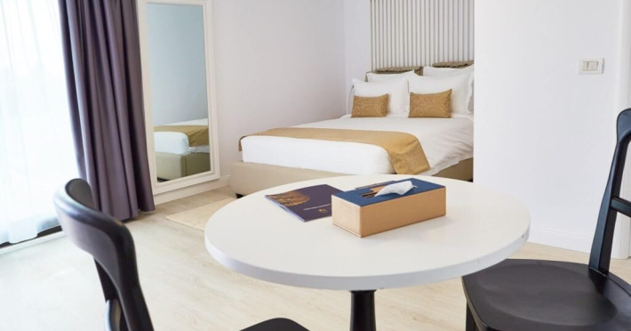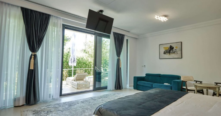 Executive Terrace Room - terasa privata, pat king size si canapea extensibila, 30 mp Experimentati un sejur de neuitat in Camera Executive cu Terasa, un colt relaxant in cadrul resortului. Aceasta camera spatioasa este dotata cu un pat king-size somptuos, imbracat in cele mai fine lenjerii, oferind un somn de neegalat. Facilitatile moderne, inclusiv un TV cu ecran plat, Wi-Fi de mare viteza si o zona de relaxare cu o canapea extensibila, va asigura o experienta relaxanta si placuta. Baia eleganta, decorata cu elemente din marmura, vine cu produse de toaleta din gama Rituals, un dus revitalizant tip walk-in si iluminare ambientala pentru a crea un sanctuar privat. Bijuteria suprema a camerei Executive Terrace este terasa privata extinsa, proiectata atat pentru relaxare, cat si pentru a lua masa in aer liber. Bucurati-va de soare pe sezlongurile confortabile sau savurati pranzul ori cina in zona de luat masa in aer liber, atent amenajata, toate acestea in timp ce sunteti invaluit de verdeata luxurianta si imprejurimi senine. Aceasta terasa exclusivista este perfecta pentru cafele de dimineata, bauturi la apus de soare sau pur si simplu pentru relaxare in orice moment al zilei. Fiecare detaliu din camera Executive Terrace este meticulos creat pentru a oferi o experienta de neuitat la Lebada Luxury Resort & SPA