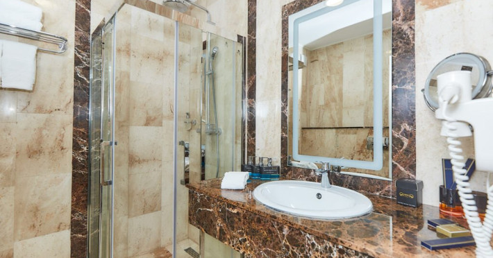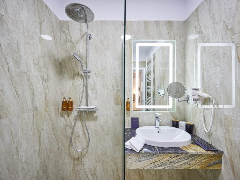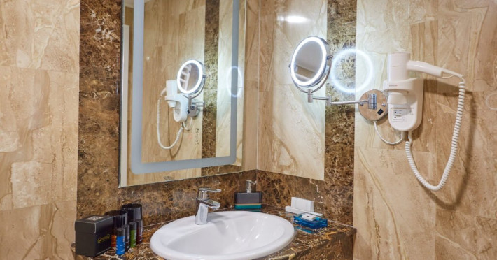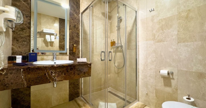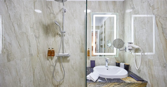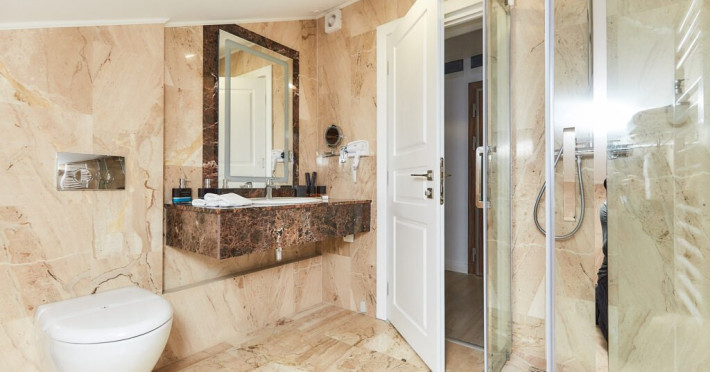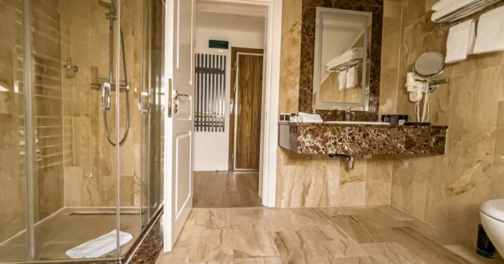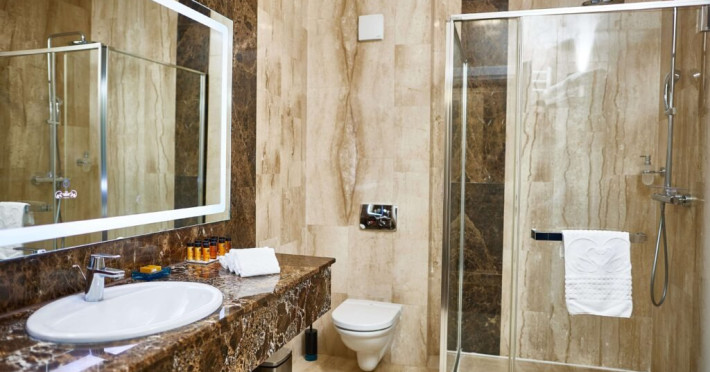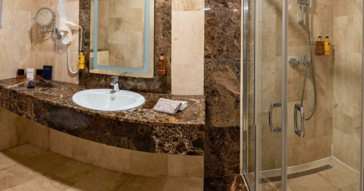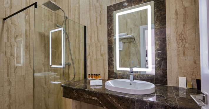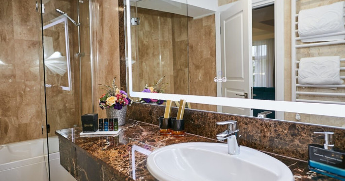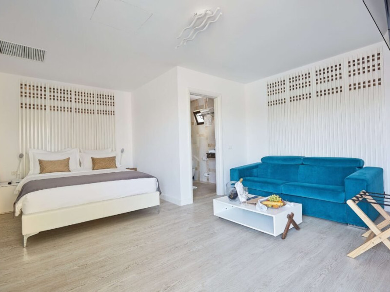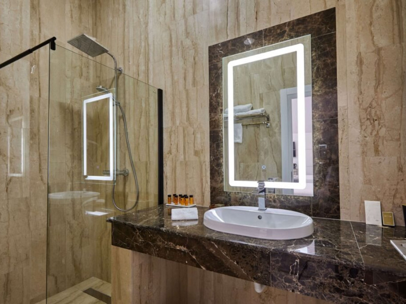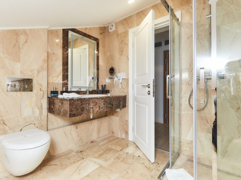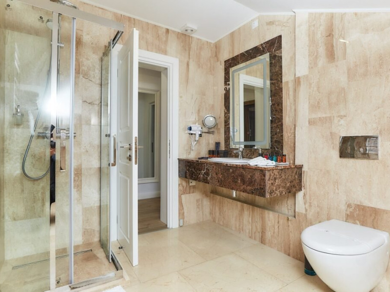 Junior Suite - pat kng size, canapea extensibila, 32 mp Suita Junior reprezinta alegerea ideala pentru familiile care cauta confort si eleganta. Aceasta include un pat king-size si o canapea extensibila confortabila, oferind spatiu generos pentru doi adulti si doi copii. Designul interior combina estetica moderna cu elemente primitoare, creand o atmosfera familiala. Suita este decorata cu iluminare ambientala si decor contemporan, generand o ambianta calma, perfecta pentru relaxare. Baia privata a Suitei Junior este dotata cu accesorii de inalta calitate si elemente elegante, oferind oaspetilor o experienta cu adevarat de 5 stele. Layout-ul spatios include o zona de toaleta cu o oglinda mare si iluminat sofisticat, amplificand confortul si comoditatea. Zona de zi, echipata cu o canapea vibranta, adauga un strop de culoare si o atmosfera vesela suitei. Suita ofera, de asemenea si un colt confortabil de relaxare, fiind ideala pentru sederi prelungite si creand cadrul perfect pentru destindere dupa o zi de explorare. Cu designul sau atent gandit, Suita Junior asigura o sedere memorabila la Lebada Luxury Resort & SPA.