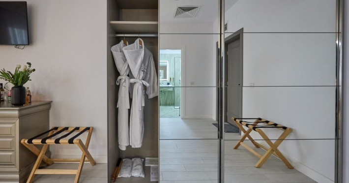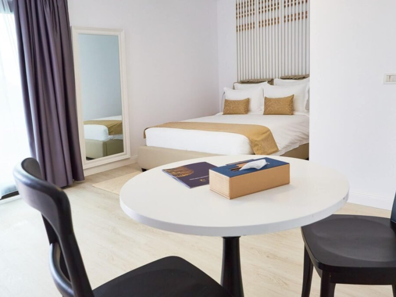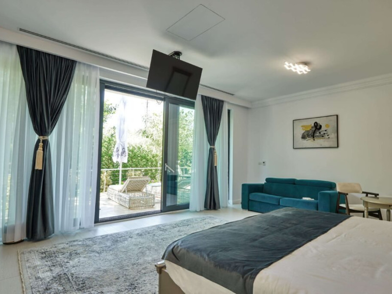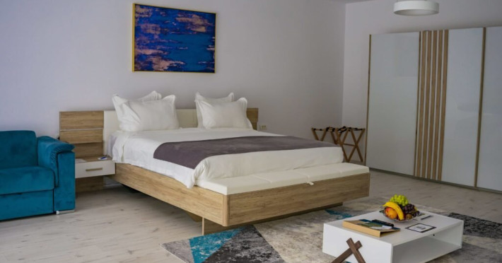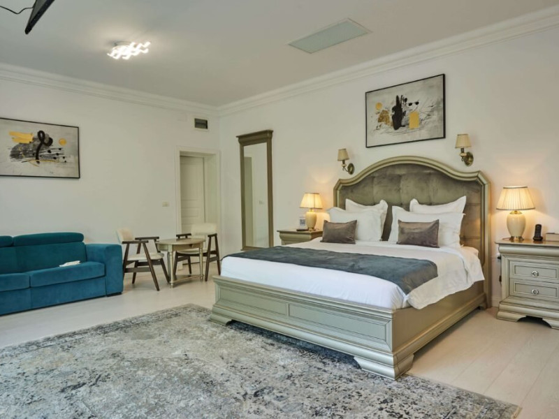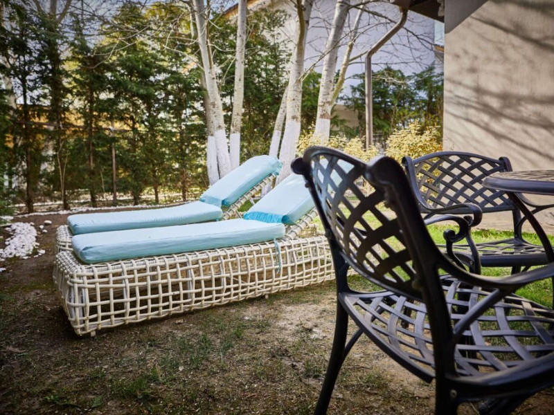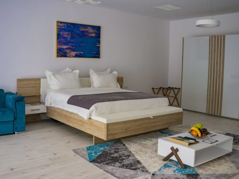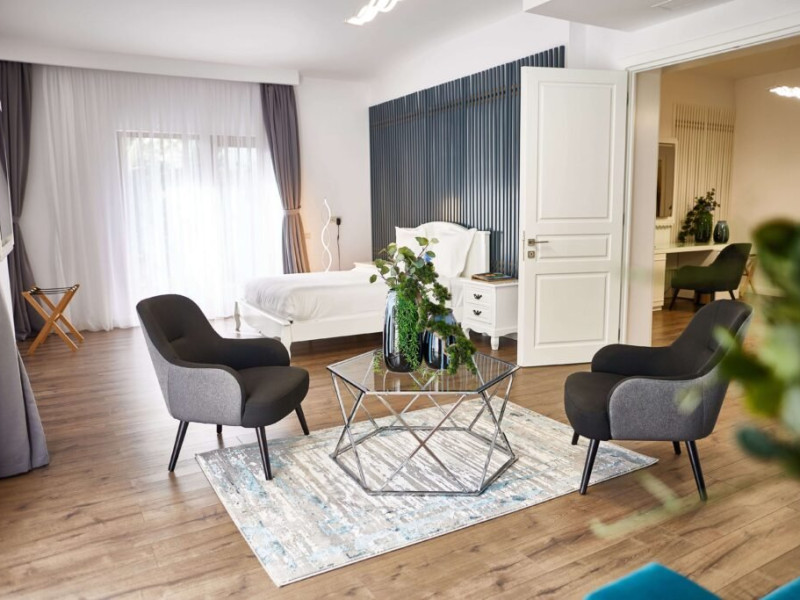 Double Garden King Room - gradina privata si Jacuzzi, 22 mp Double Garden King Room devine propria oaza de relaxare, cu o gradina ingrijita meticulos, care ofera o evadare linistita din agitatia vietii de zi cu zi. Jacuzzi-ul privat, accesibil la orice ora face ca acest tip de camera sa fie printre alegerile de top. In interior, descoperiti un zona a linistii si stilului, unde eleganta moderna intalneste confortul de neegalat. Un pat king-size, conceput pentru a va oferi un somn odihnitor pe tot parcursul noptii. Pentru a va imbunatati sederea, am pregatit cu atentie o gama de facilitati, asigurandu-va ca fiecare moment este plin de rasfat. De la Wi-Fi gratuit la halate de baie si papuci pufosi, fiecare detaliu a fost luat in considerare pentru a va oferi o experienta de relaxare.