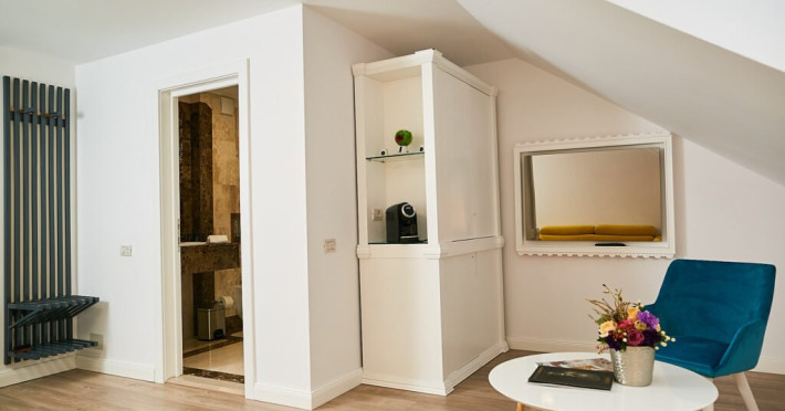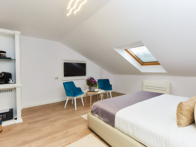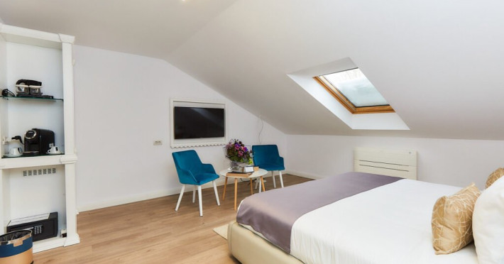 Camera Executive Loft King - camera Loft, fereastra la tavan, 24 mp Camerele Executive Loft King sunt disponibile atat in cladirea principala a hotelului, cat si intr-o cladire separata adiacenta din cadrul statiunii. Proiectata cu o atentie deosebita pentru detalii, camera Executive Loft King se mandreste cu mobilier chic si facilitati premium care raspund tuturor nevoilor dvs. Fie ca va relaxati dupa o zi de explorare sau va incepeti dimineata cu o explozie de inspiratie de la rasaritul soarelui, aceasta camera ofera combinatia perfecta de confort si rafinament. Ideala pentru cuplurile care cauta o ascunzatoare romantica sau pentru calatorii solo, aceasta camera tip loft ofera o experienta de neegalat. Din momentul in care pasiti inauntru, veti fi invaluiti intr-o atmosfera de exclusivitate si rafinament, ceea ce va face ca sederea dvs. la Lebada Luxury Resort & SPA sa fie de-a dreptul extraordinara. Experimentati unitatea de cazare de tip mansarda in camera Executive Loft King, unde fiecare detaliu este creat pentru a va transforma sejurul intr-o calatorie de neuitat in confort si eleganta.