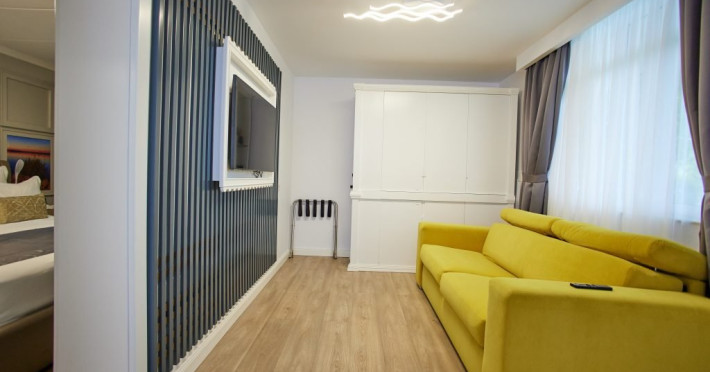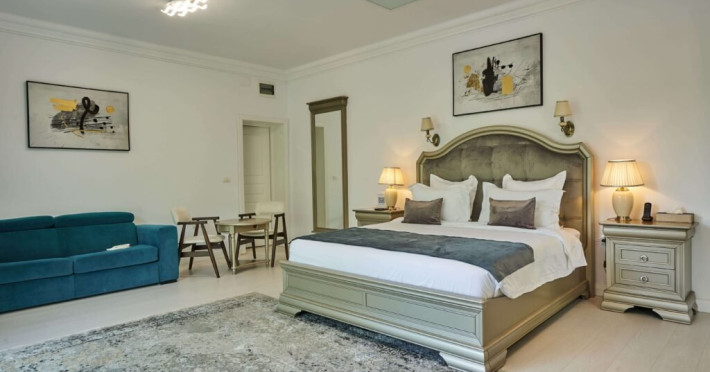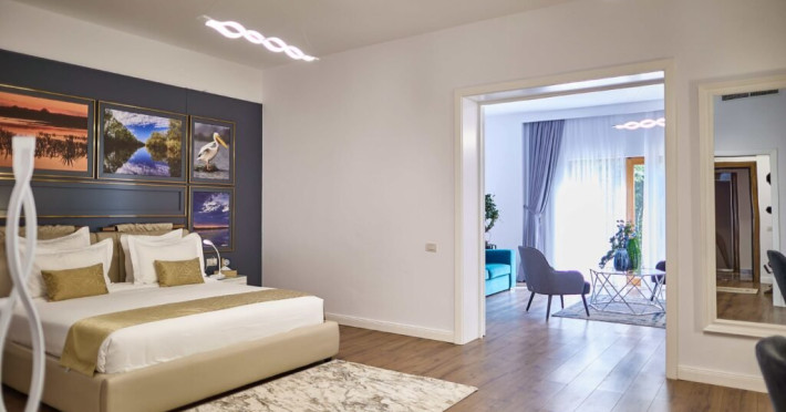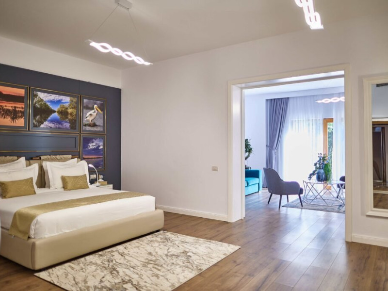 Apartament senior - canapea extensibila, vederi incantatoare, 32 mp. Bine ati venit la Senior Suite de la Lebada Luxury Resort & SPA, un amestec de rafinament si confort. Dispunand de un pat dublu king si o canapea extensibila de plus, acest apartament poate gazdui pana la trei adulti sau doi adulti si doi copii. Amenajarea spatioasa si decorul rafinat o fac ideala pentru familii sau grupuri mici care cauta o nota de eleganta. Suita emana o ambianta senina, cu tonuri neutre, moi si decor contemporan. Ferestrele mari inunda spatiul cu lumina naturala, evidentiind mobilierul elegant. Zona de living este perfecta pentru relaxare, fie ca vizionati un film la televizorul cu ecran plat sau va bucurati de imprejurimile linistite. Facilitatile moderne includ Wi-Fi gratuit de mare viteza, un aparat de cafea de ultima generatie si un minibar bine aprovizionat. Baia eleganta dispune de articole de toaleta marca Rituals si un dus revigorant, creand un sanctuar al relaxarii. Bucurati-va de privelisti uluitoare ale gradinilor luxuriante ale resortului sau ale linistitei Delta a Dunarii de pe balconul camerei. La Lebada Luxury Resort & SPA, Senior Suite ofera un refugiu relaxant in care fiecare moment este creat pentru perfectiune, asigurand un sejur de neuitat.