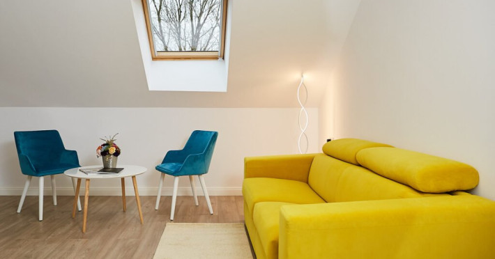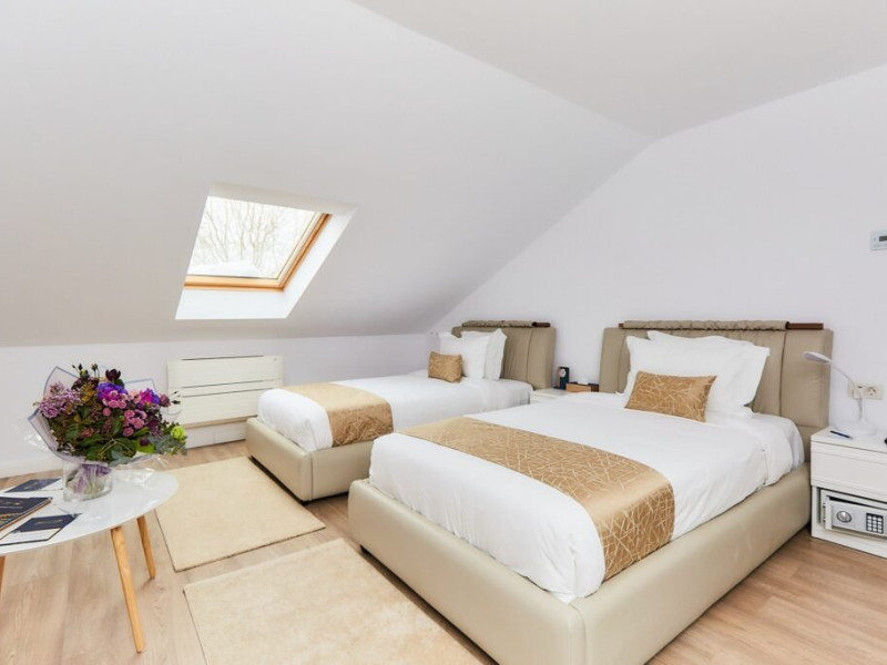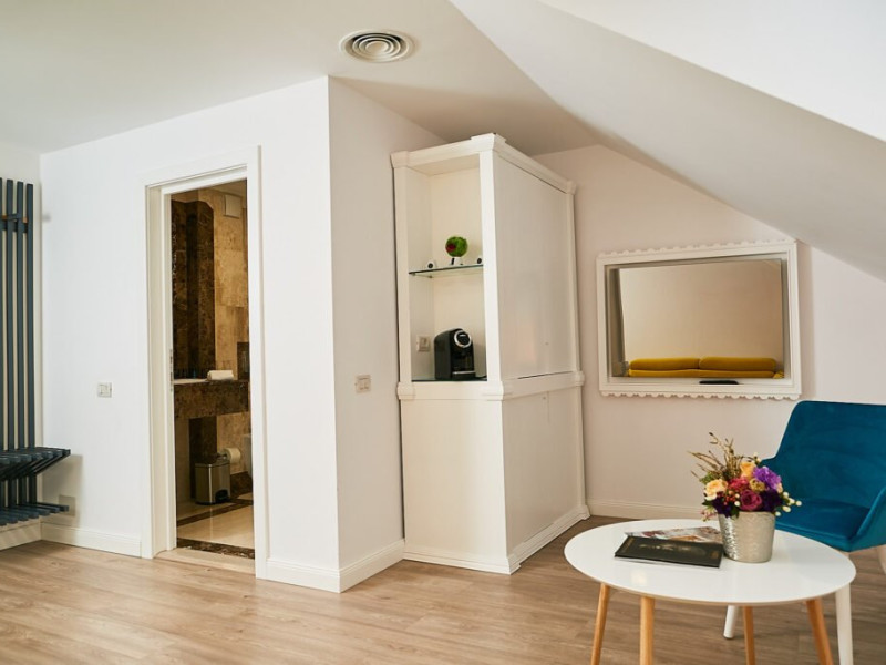 Junior Loft Suite - fereastra de tavan, canapea extensibila, 41 mp Suita Junior Loft este o camera spatioasa si eleganta, conceputa pentru a oferi confort si versatilitate. Compartimentarea atent gandita face ca suita sa fie potrivita atat pentru cupluri, cat si pentru familii. Camerele Junior Loft Suite sunt disponibile atat in cladirea principala a hotelului, cat si intr-un corp separat, situat in cadrul resortului. Indiferent de amplasare, toate suitele ofera acelasi nivel de confort, design modern si facilitati premium. Unele dintre camere sunt amplasate in zone de tip loft si beneficiaza de ferestre in tavan, care permit luminii naturale sa patrunda din abundenta si ofera privelisti placute catre coroanele copacilor din jur. Baia este finisata cu marmura si dotata cu facilitati moderne si produse de ingrijire de calitate superioara, pentru o experienta de relaxare completa. Fie ca este situata in hotelul principal sau in corpul separat, Junior Loft Suite ofera intimitate, liniste si un ambient rafinat, fiind o alegere excelenta pentru oaspetii care cauta un sejur confortabil si elegant la Lebada Luxury Resort & SPA.