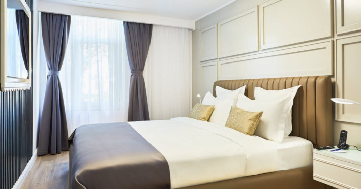 Garden View King - vederi fermecatoare, 30 mp. Treziti-va la soaptele naturii, invaluite in eleganta pura. Camera Garden View King este un sanctuar al elegantei si linistii, conceput pentru cei care cauta un echilibru perfect intre confort si seninatatea naturii. Cu vedere la vegetatia luxurianta a statiunii, acest spatiu rafinat va invita sa va relaxati intr-un pat king-size cu lenjerie premium, inconjurat de o ambianta calda si sofisticata. Bucurati-va de o experienta de baie de tip spa, sorbiti-va cafeaua de dimineata in timp ce admirati gradinile si lasati fiecare detaliu - de la halatele de baie de plus la minibar - sa va imbunatateasca sederea.