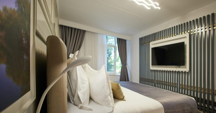 VIP Garden King Room - gradina privata si Jacuzzi, 35 mp Una din preferatele oaspetilor, camera VIP Garden include o gradina privata cu jacuzzi, unde va puteti relaxa intr-o oaza de liniste. Gradina, o veritabila insula verde, asigura acces facil catre malurile calme ale Dunarii, transformandu-se intr-un refugiu ideal pentru cei ce adora natura. Amploarea spatiului exterior, completat de sezlonguri primitoare si o zona de dining in aer liber, creeaza cadrul perfect pentru a va bucura de mesele in natura, in timp ce va bucurati de ambianta relaxanta. In interior, camera se mandreste cu un pat king-size proiectat pentru un confort maxim, completat de un decor elegant si facilitati moderne. De la produse de baie Rituals de inalta calitate la un minibar complet aprovizionat si un aparat de cafea, fiecare detaliu este pregatit pentru a va imbunatati sederea. Fie ca sunteti aici pentru o escapada romantica sau pur si simplu pentru a scapa de agitatia de zi cu zi, VIP King Room promite un amalgam de confort si natura.