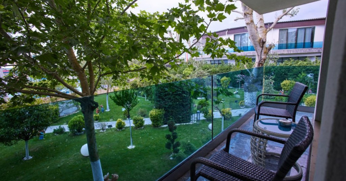 Double Garden Deluxe - gradina privata si Jacuzzi, 30 mp Rasfatati-va intr-un refugiu suprem cu camera Double Garden Deluxe, unde fiecare detaliu este meticulos conceput pentru a oferi o experienta diferita si linistita. Camera spatioasa dispune de un pat king-size somptuos, care promite un somn odihnitor, invaluindu-va in confort cu lenjerii si perne de inalta calitate. Bucurati-va de facilitatile moderne care va imbunatatesc sejurul, inclusiv un aparat de cafea, o selectie de ceaiuri, apa imbuteliata si o baie eleganta, cu produse de toaleta din gama Rituals. Decorul elegant al camerei, combinat cu lumina naturala ce patrunde prin ferestrele mari, creeaza o ambianta linistita si primitoare. Pasiti in gradina privata, un colt de rai pentru relaxare si intimitate. Aici, va puteti destinde pe sezlongurile confortabile, savura o masa la zona de dining in aer liber sau va puteti relaxa in jacuzzi-ul personal. Inconjurat de o vegetatie luxurianta, acest refugiu retras este locul ideal pentru relaxare si rejuvenare. Fie ca va relaxati in jacuzzi sub cerul instelat sau va bucurati de un moment de liniste in gradina, camera Double Garden Deluxe ofera o combinatie perfecta de confort si natura la Lebada Luxury Resort & SPA.