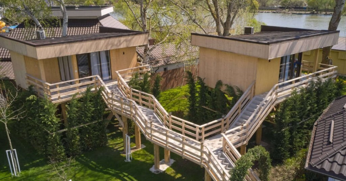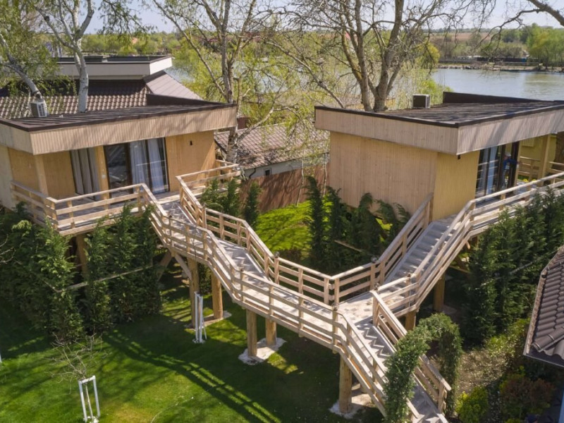 Casuta in Copac - terasa cu vedere panoramica, 22 mp Amplasate printre vegetatia vasta din Delta Dunarii, casutele din copac de la Lebada Luxury Resort & SPA ofera o experienta cu adevarat unica si de neuitat. Localizarea la inaltime ofera vederi panoramice ale Dunarii linistite. Fiecare casuta din copac are o terasa privata care va invita sa luati masa in aer liber in timp ce admirati frumusetea naturala uimitoare. In interior, veti gasi o camera spatioasa, cu design elegant, dotata cu un pat confortabil si facilitati moderne pentru a asigura un sejur relaxant. Casutele din copac combina farmecul rustic cu confortul modern, oferind o retragere confortabila in inima naturii. Interioarele sunt atent concepute pentru a maximiza confortul si stilul, cu spatiu amplu pentru a va relaxa si a va bucura de linistea imprejurimilor. Fiecare casuta din copac este dotata cu o baie moderna, completa cu articole de toaleta premium, si ofera toate facilitatile necesare pentru o escapada perfecta.