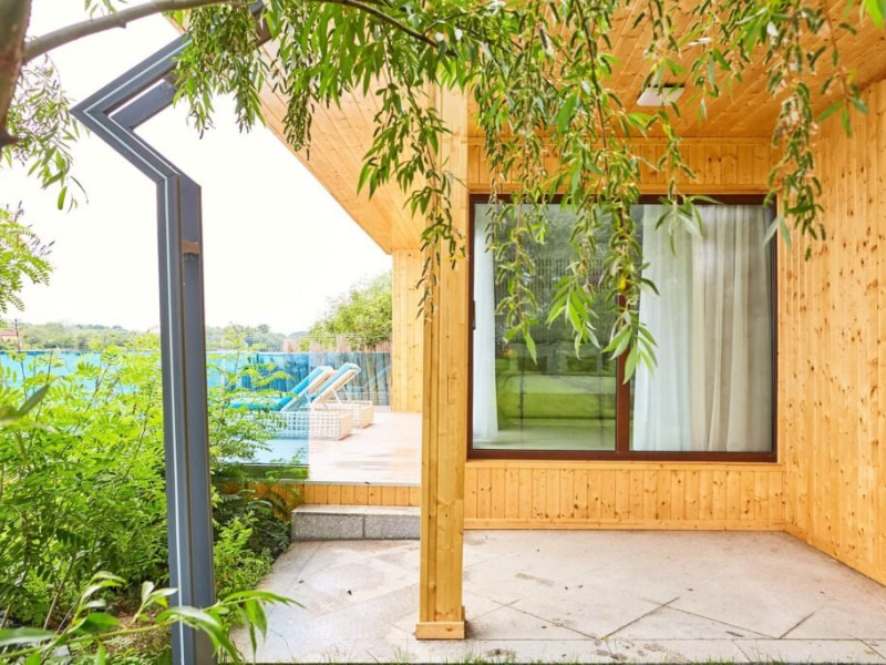 Bungalow - Jacuzzi privat, vederi minunate, locatie unica, 24 mp Traiti o experienta de confort deosebit la Lebada Luxury Resort & SPA, in bungalow-urile foarte apreciate de oaspeti. Fiecare bungalow, amplasat pe malurile calme ale Dunarii, dispune de o terasa privata cu privelisti uimitoare ale raului. Relaxati-va in jacuzzi-ul personal, savurati soarele pe sezlongurile confortabile si bucurati-va de mese delicioase in zona de dining privata, in inima frumusetii naturale a Deltei. Bungalow-urile sunt concepute pentru a oferi o evadare aparte, cu un amestec de farmec si facilitati moderne. Fiecare camera este dotata cu un pat confortabil pentru a asigura un somn odihnitor, si o baie atent amenajata, cu articole de toaleta de din gama Rituals. Relaxati-va in jacuzzi-ul personal, bucurati-va de soare pe sezlonguri si savurati mese rafinate in zona de dining privata, inconjurati de peisajul natural idilic al Deltei.
