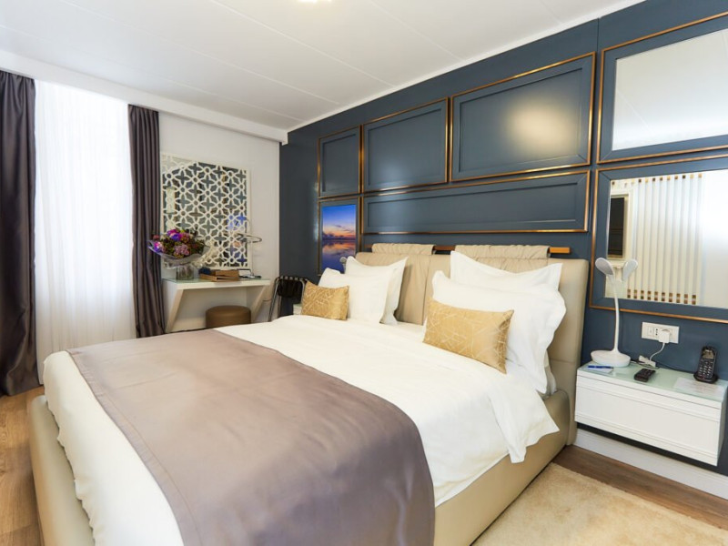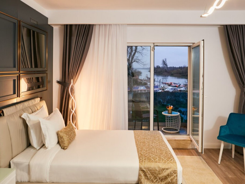 Camera King Executive a balcon, acces usor la centrul SPA, 40 mp Confort si Simplitate - sunt cuvintele care descriu acest tip de camera, Executive King Room. Acest refugiu elegant ofera o evadare senina din agitatie, unde eleganta moderna intalneste relaxarea. Relaxati-va in patul king-size si bucurati-va de un somn linistit, apoi treziti-va cu privelisti uluitoare ale Deltei Dunarii din balconul camerei. In interior, camera este amenajata cu atentie, cu mobilier contemporan si facilitati complete, inclusiv o zona de relaxare spatioasa, o baie eleganta si Wi-Fi gratuit. Fie ca va aflati aici in interes de afaceri sau pentru o vacanta bine meritata, camera Executive King Room cu balcon ofera combinatia perfecta de confort si comoditate, asigurand un sejur de neuitat la Lebada Resort.