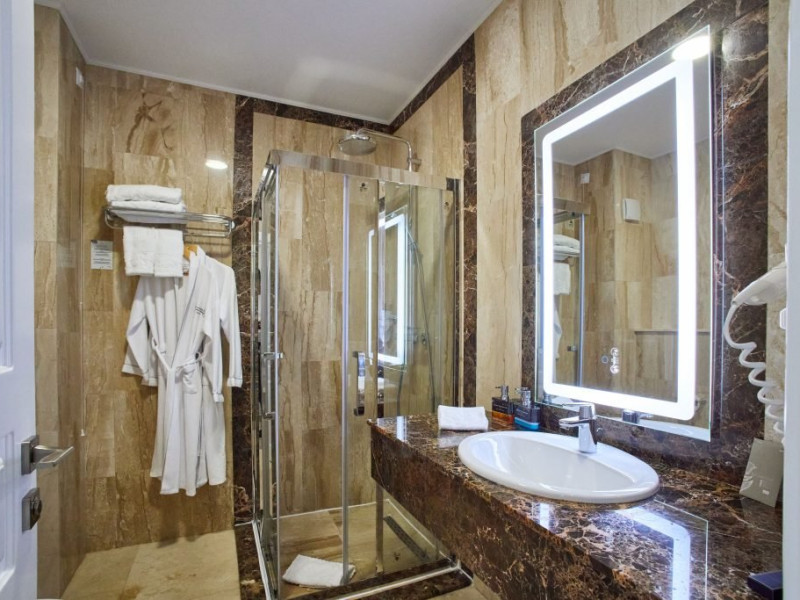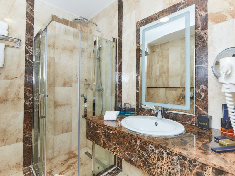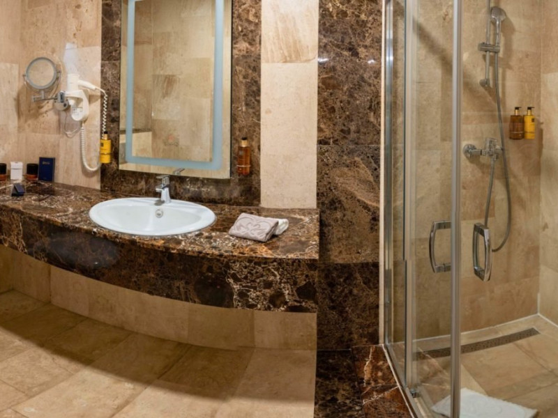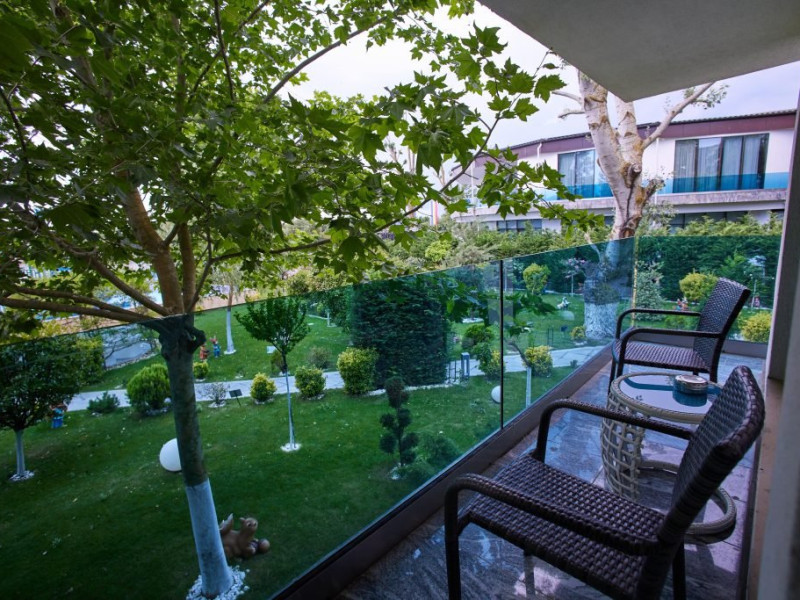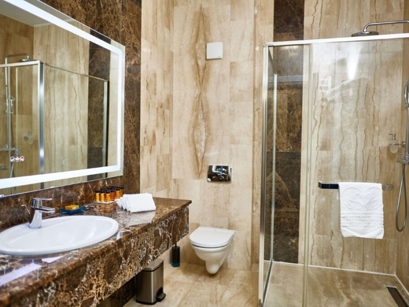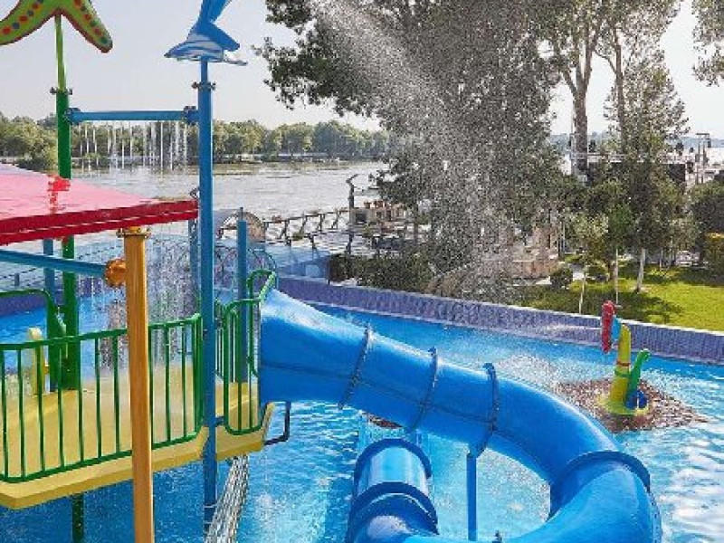 Piscine pentru adulti si copii, sala de fitness, saune. Aqua Park: Pentru oaspetii tineri, parcul acvatic al resortului este o adevarata perla. Dotat cu tobogane de apa spectaculoase si spatii de joaca interactive, parcul promite distractie pe tot parcursul zilei. Intr-un decor plin de viata si perfect sigur, copiii se pot bucura de libertatea de a explora si a se juca, in timp ce parintii se pot destinde linistiti in proximitate, stiind ca micutii lor se afla intr-un mediu sigur si incantator. Piscina pentru adulti: pentru cei care cauta o experienta mai linistita, piscina destinata exclusiv adultilor ofera un refugiu seren. Acest spatiu retras este perfect pentru relaxare, oferind un loc pasnic unde va puteti bucura de soare, puteti citi o carte buna sau puteti inota in liniste, departe de activitatea animata a piscinei principale si a parcului acvatic.