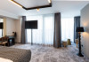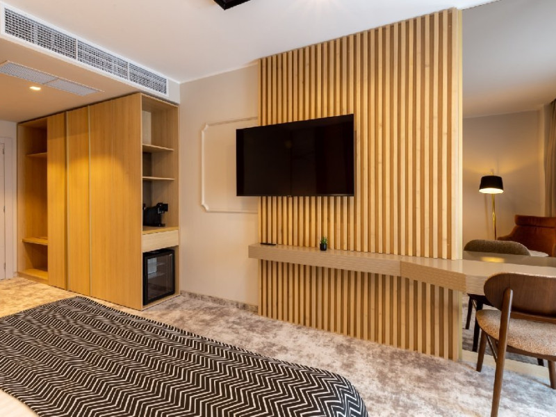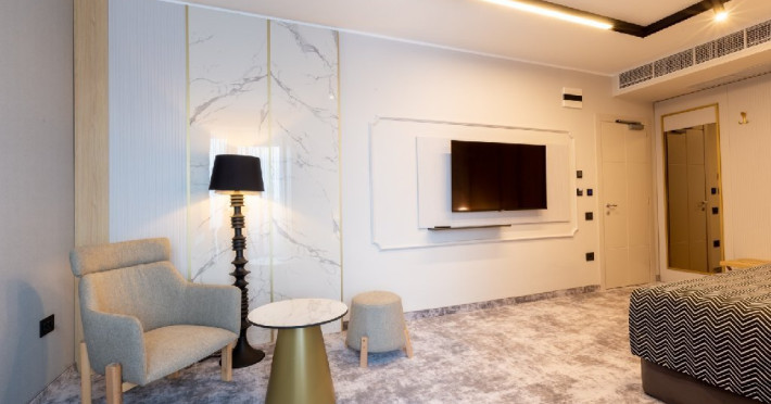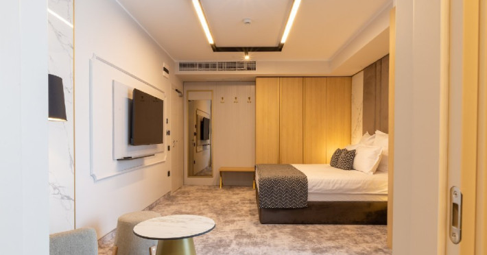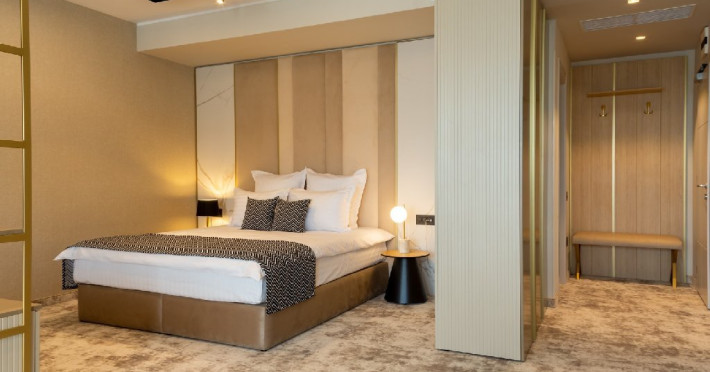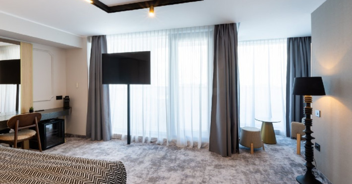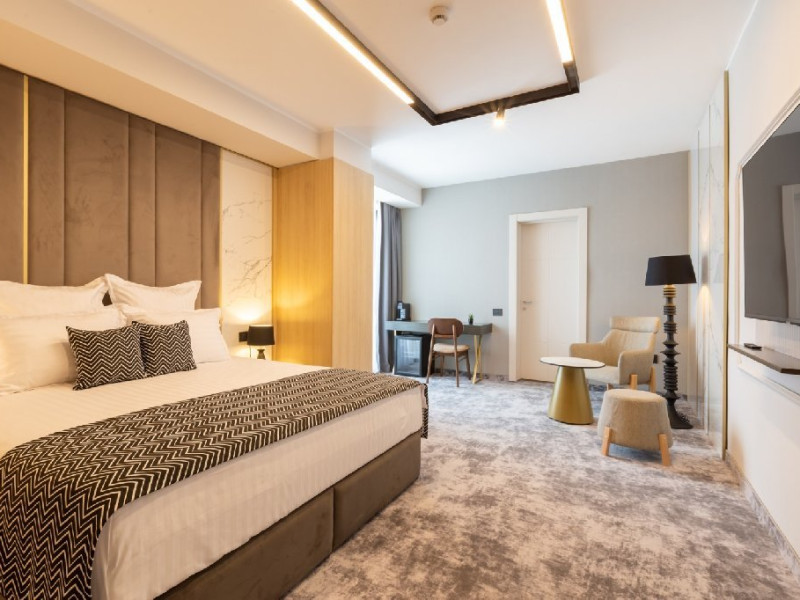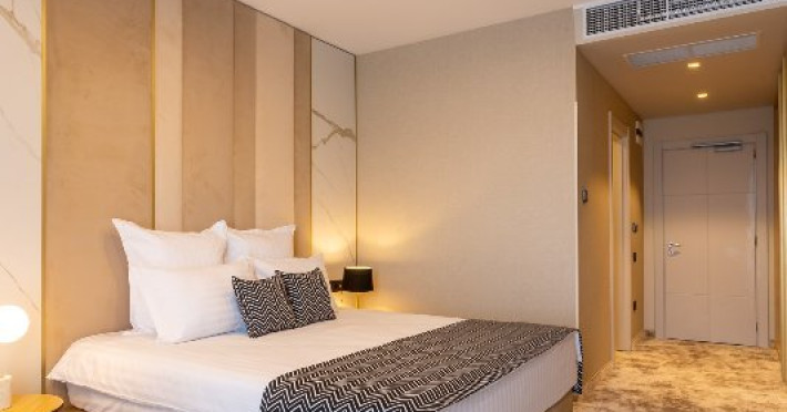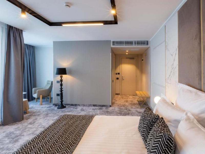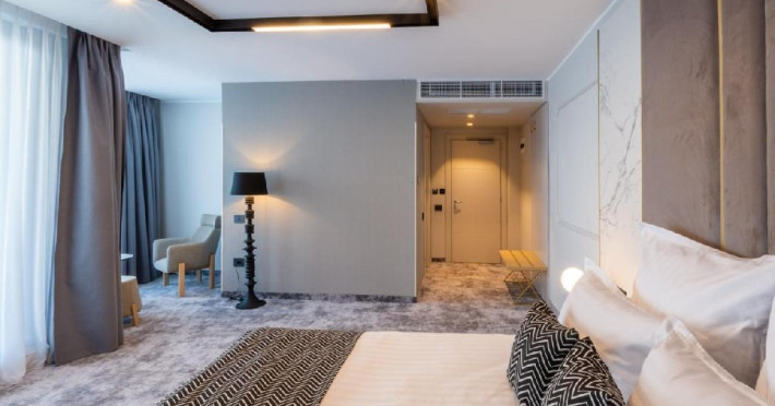 Hotel Lupa by Bueno, amplasat in Centrul Istoric al orasului Constanta, langa statuia Lupa Capitolina, la cateva minute de Piata Ovidiu, reprezinta echilibrul perfect dintre confort modern si eleganta istorica, fiecare detaliu al hotelului fiind gandit astfel incat sa aveti o sedere memorabila. Facilitati hotel: restaurant a la carte, internet wifi, lift, in jurul hotelului exista locuri de parcare publice cu plata. Dotari camere: Cele 32 de camere, spatioase si cu facilitati moderne, precum Smart TV, espressor cafea cu capsule, seif, uscator de par, sistem centralizat de climatizare va ofera o experienta unica fie ca este vorba de o vacanta sau o calatorie de afaceri. Camerele de la etajul 4 dispun de balcoane, oferind o vedere panoramic asupra zonei peninsulare a Constantei, a centrului istoric si a Marii Negre. Facilitati copii in camera cu 2 adulti: - 1 copil 0-5.99 ani beneficiaza de gratuitate la cazare fara pat suplimentar asigurat - 1 copil 6-9.99 ani achita pat suplimentar in valoare de 50 de lei/noapte - 1 copil 10-17.99 ani achita 30% din valoarea camerei duble, cu un pat suplimentar asigurat. Patul suplimentar si patutul de bebelus pot fi amplasate doar in camerele Premium si Executive. Capacitatea suiitei este de 2 adulti si 2 copii 0-17.99 ani (au canapea extensibila).