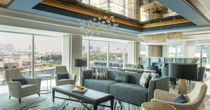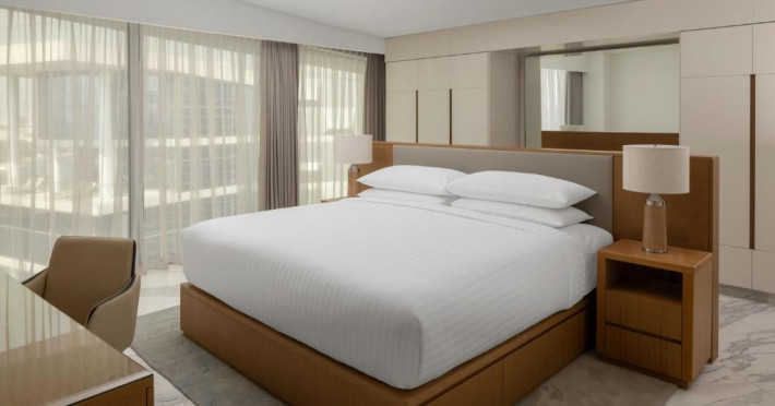 Marriott Marquis Dubai se află in Dubai, la 4,4 km de Grand Bur Dubai Masjid, și pune la dispoziție o piscină in aer liber, un centru de fitness, o terasă și parcare privată gratuită. Proprietatea pune la dispoziție un restaurant, precum și un bar, o saună și o cadă cu hidromasaj. Proprietatea oferă room-service, un centru de afaceri și servicii de organizare de tururi.