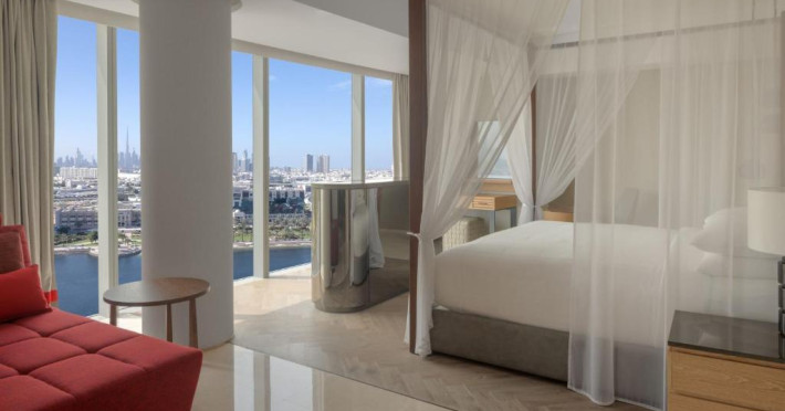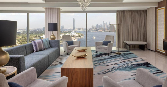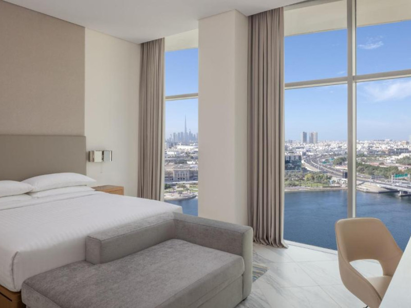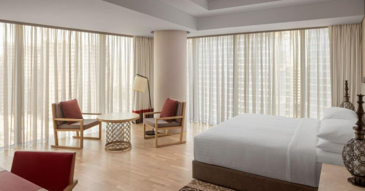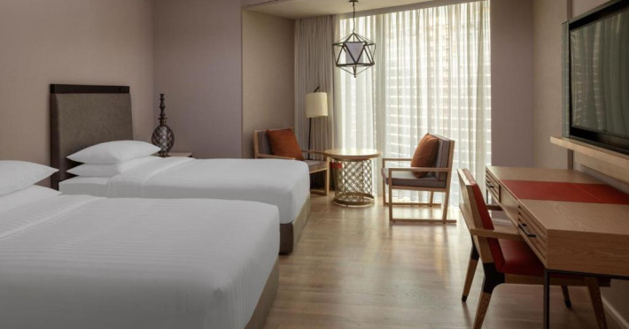 La acest hotel, fiecare cameră oferă climatizare, o zonă de relaxare, un televizor cu ecran plat cu canale prin satelit, o cutie de valori și o baie proprie cu bideu, articole de toaletă gratuite și un uscător de păr. Fiecare cameră oferă o cafetieră, iar unele camere speciale includ o bucătărie cu un frigider, o mașină de spălat vase și un cuptor. La Marriott Marquis Dubai, toate camerele au lenjerie de pat și prosoape.