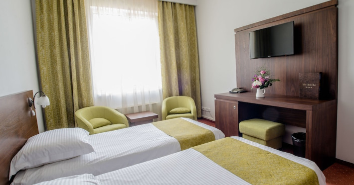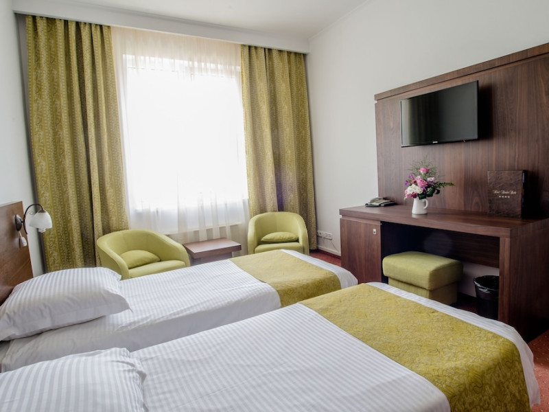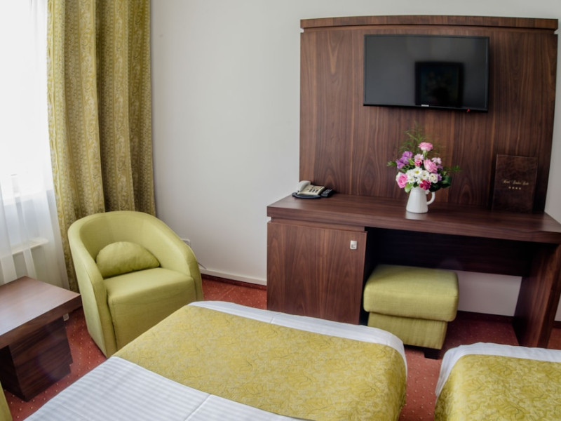 Located in a green and peaceful area, 1.2 mi from the center of Medias, Hotel BinderBubi has a restaurant, bar, a garden and BBQ facilities. Boasting family rooms, this property also provides guests with a sun terrace. The accommodations offers a 24-hour front desk, room service and ticket service for guests. Free WiFi is offered The rooms and suites have mini-bars, and cable TV. Air conditioning comes as a standard amenity. Guests can benefit from the bicycle rental service, and they can play paint ball in the vicinity. Guided excursions to medieval towns such as Medias, Sighisoara or the Saxon fortified churches of Biertan and Mosna can be organized by the BinderBubi Medias Hotel. Hotel BinderBubi is located 29 mi from Sibiu.When booking more than 7 rooms, different policies and additional supplements may apply. WiFi is available in all areas and is free of charge. Free private parking is available on site (reservation is not needed). Pets are allowed. Charges may apply. Children of all ages are allowed. Children 16 and under stay for free when using an existing bed. You havent added any cribs. You havent added any extra beds.Checkin Time: 14:00Checkin End Time: 00:00Checkout From: 01:00Checkout End Time: 11:00