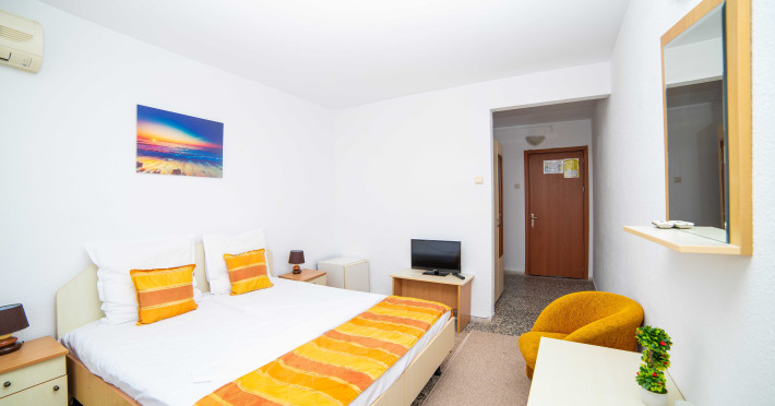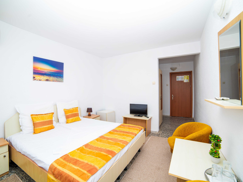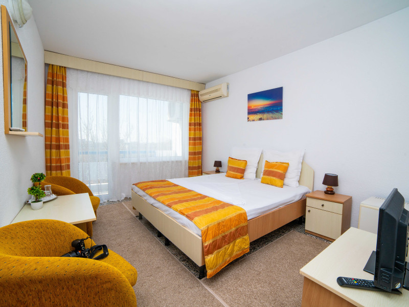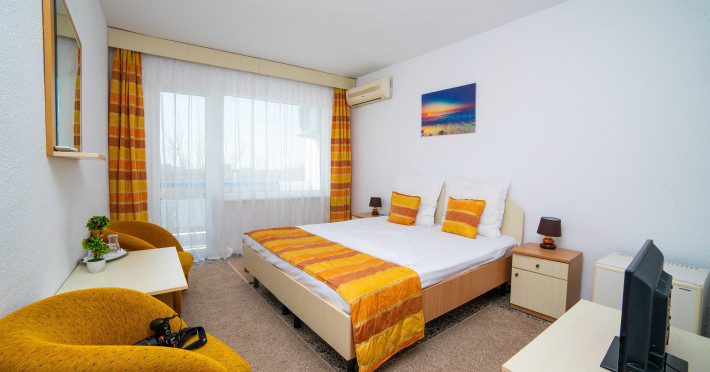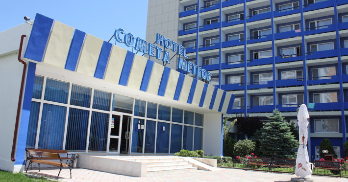 Hotelul Meteor este situat in zona centrala a statiunii Jupiter, la o distanta de 20 m de plaja. Facilitati hotel: 214 camere duble, din care 26 camere de lux, 3 lifturi, restaurant propriu amplasat pe malul marii (300 locuri), bar de zi, terasa, braserie pe plaja, seif, inchiriere jocuri (table, rummy, badminton), sala de conferinte complet utilata (150 locuri - congres), spatii verzi amenajate cu scaune, mobilier de gradina si umbrele, internet priza si WI-FI, facilitati pentru copii (carut, patut gratuit pentru copiii cu varsta intre 0-2 ani, scaunel gratuit pentru servit masa - in limita disponibilitatii), parcare contra-cost in limita locurilor disponibile. Facilitati camere: camere standard - TV, cablu TV, minibar, aer conditionat, pardoseala gresie, baie proprie cu dus, uscator par, protectie anti insecte, mobilier de balcon (masuta cu doua scaune), tamplarie PVC si geamuri termopan, vedere laterala la mare; camere de lux - mobilier nou, pardoseala mochetata recent, TV incorporat in oglinda, cablu TV, minibar, aer conditionat, baie cu dus spatioasa, uscator de par, mobilier de balcon (masuta cu doua scaune), tamplarie PVC si geamuri termopan, protectie anti insecte.