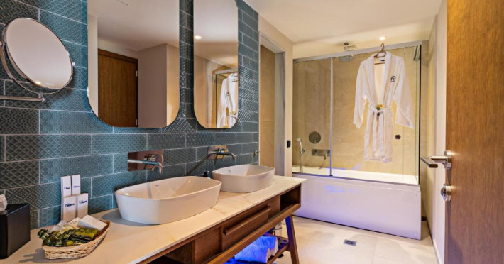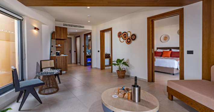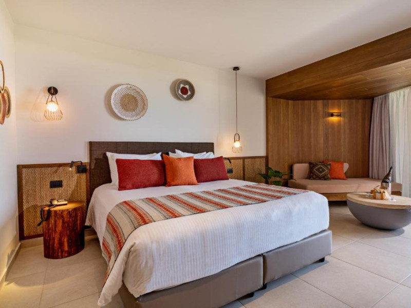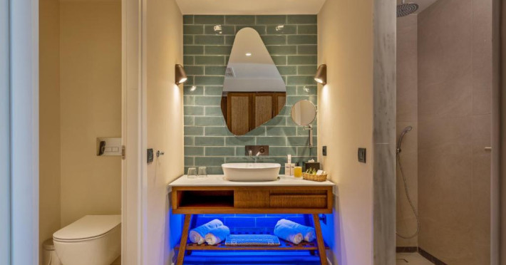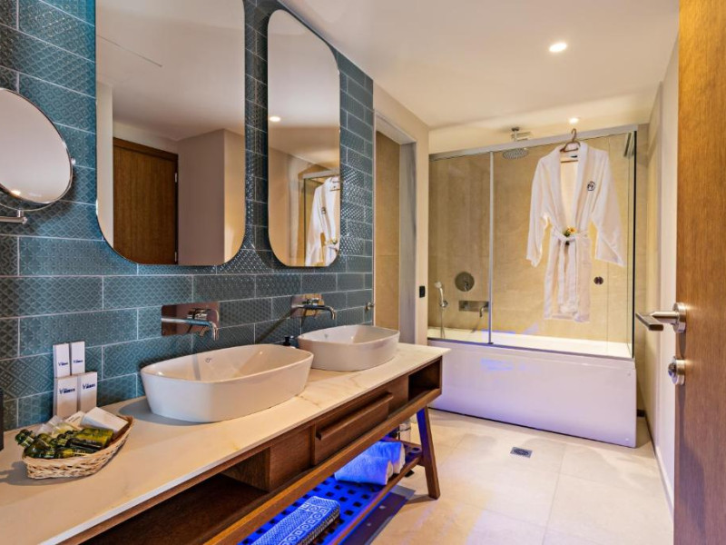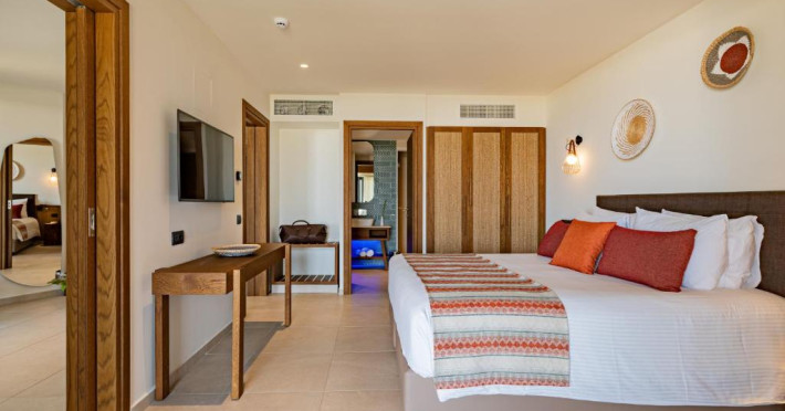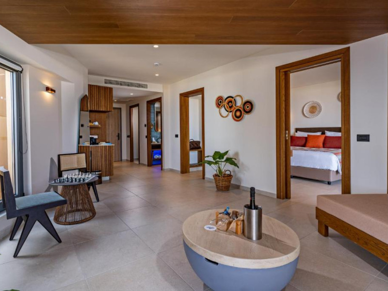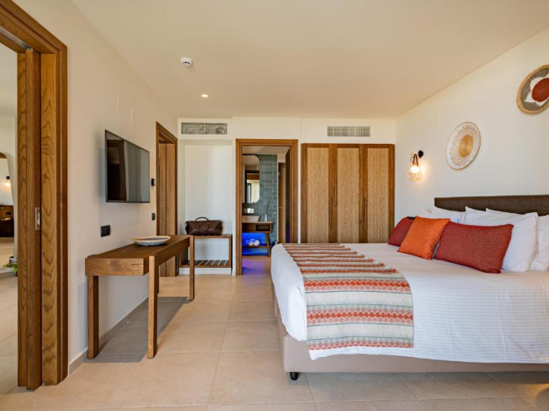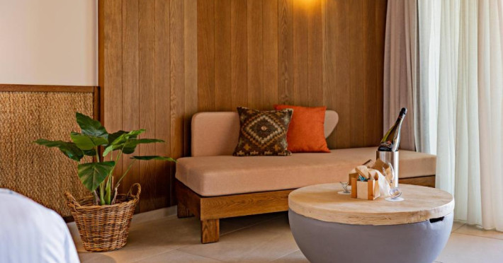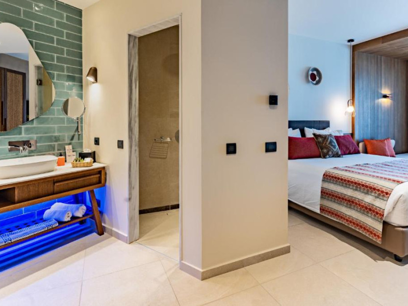 Camerele elegante beneficiază de design contemporan și balcoane private, multe dintre ele cu vedere spre Marea Egee. Facilitățile premium includ un centru spa sofisticat cu tratamente de relaxare, o piscină infinity cu șezlonguri confortabile și un restaurant à la carte care servește specialități mediteraneene autentice.
