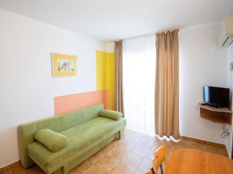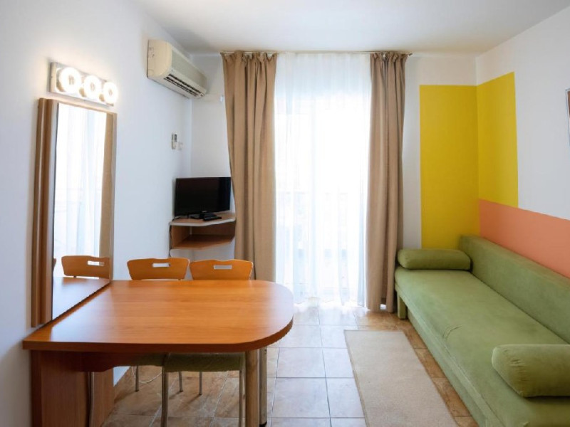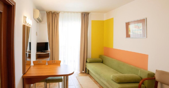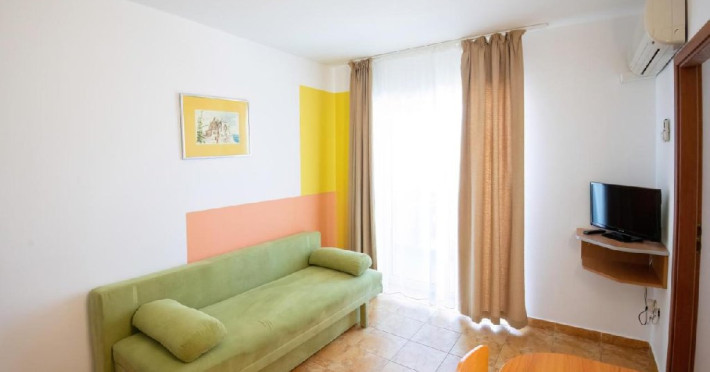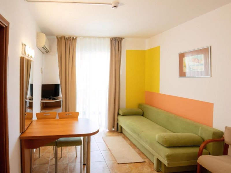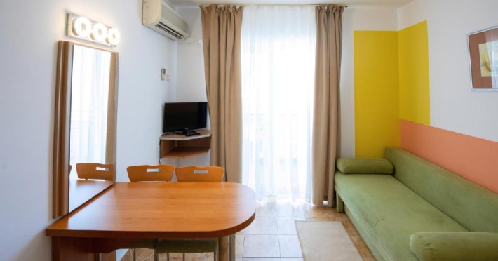 Apartament a au living si dormitor, pat matrimonial si canapea extensibila, cu usa intre cele doua spatii, televizor in fiecare camera, internet, o singura baie, balcon, aer conditionat in living, si racitor. Capacitate maxima: 4 adulti sau 3 adulti sau 2 adulti + 1 copil max. 18 ani sau 2 adulti + 2 copii (0-17.99 ani).