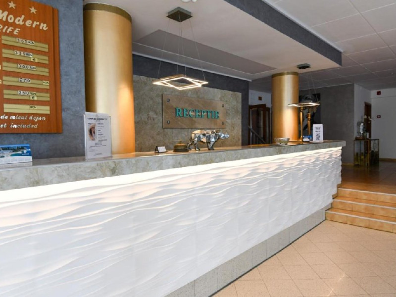 Descriere: Hotelul dispune de sala de conferinte (70 locuri), piscina in aer liber, bar de zi, restaurant cu terasa, internet. In fiecare seara pe terasa restaurantului muzica live si seri cu surprize. Complex Modern va pune la dispozitie posibilitati de agrement pentru toate gusturile: mini-teren de badminton sau volei pentru cei competitivi, masa de tenis si masa de biliard pentru cei care iubesc umbra, sala fitness, aqua gym si zumba la piscina pentru cei hiperactivi si darts, remi, table si sauna pentru cei care iau avacantaa in sensul cel mai autentic, loc de joaca pentru copii. In restaurant se organizeaza cine tematice, seri in care divertismentul urmareste specificul cinei, cu muzica si spectacol. Animatori simpatici ii vor distra zilnic pe cei mici cu jocuri interactive, karaoke, spectacole de magie, dance party, face painting, baloane modelate, filme si tot felul de ghidusii. Plaja hotelului Modern are toate avantajele unei plaje private, ingrijita si cocheta, cu nisip curat, netezit in fiecare clipa de o briza racoroasa. Camerele sunt dotate cu aer conditionat, TV, minibar (contra cost), internet, telefon, seif, uscator de par, balcon.