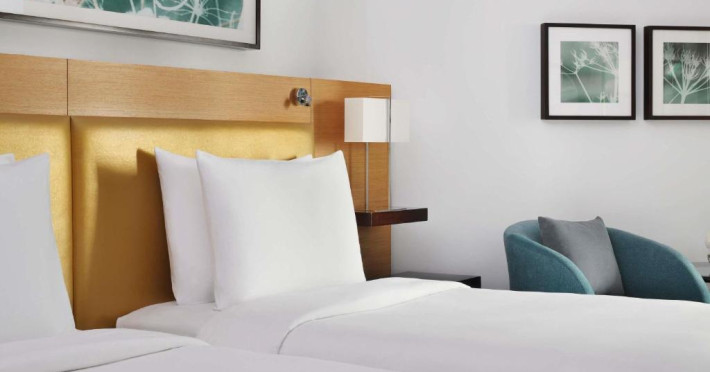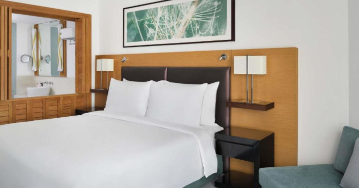 Toate cele 297 de camere sunt decorate modern. Anumite camere și suite oferă vedere parțială la mare.