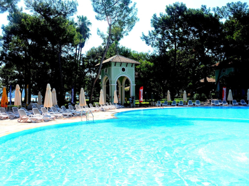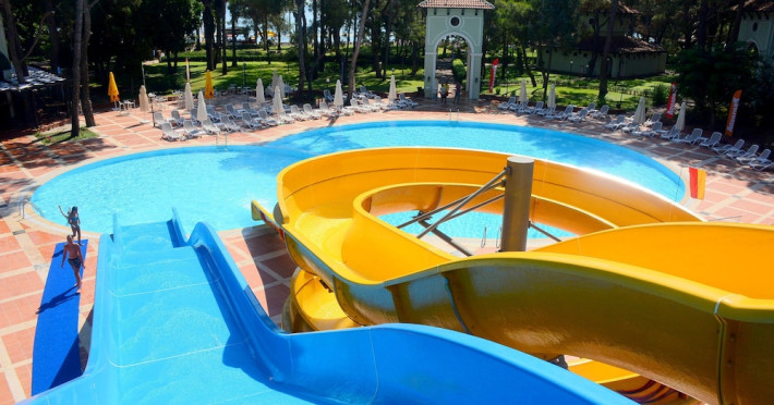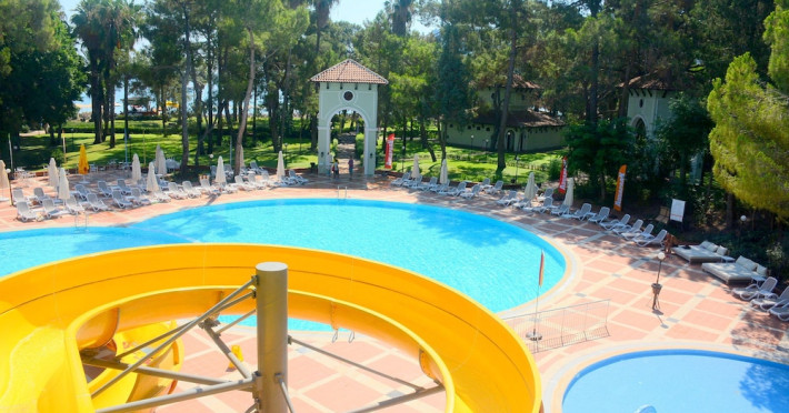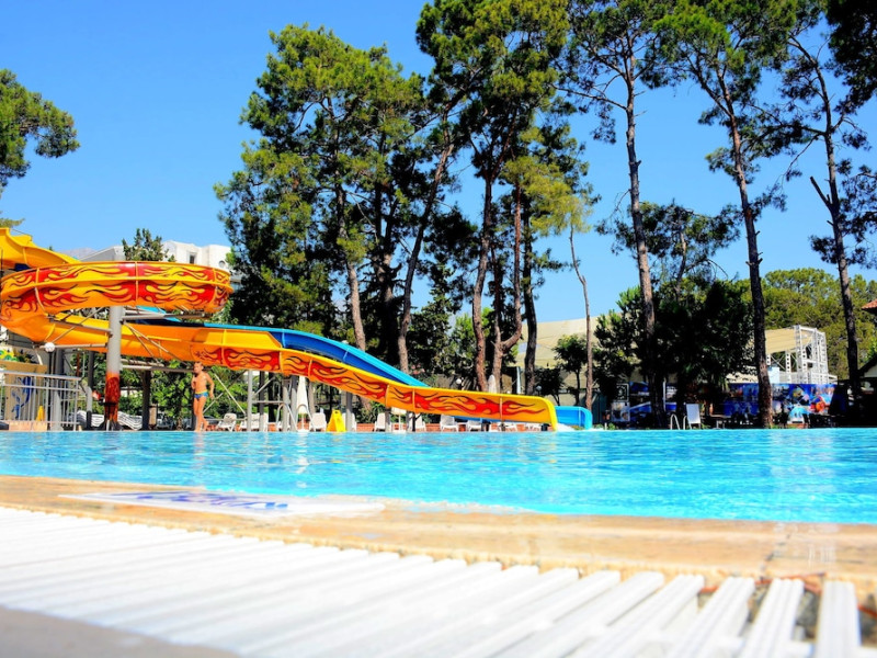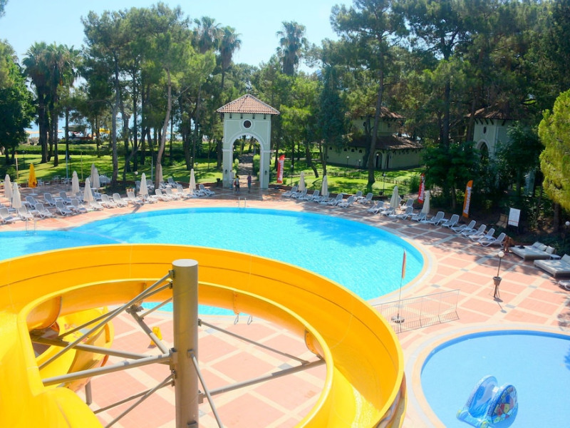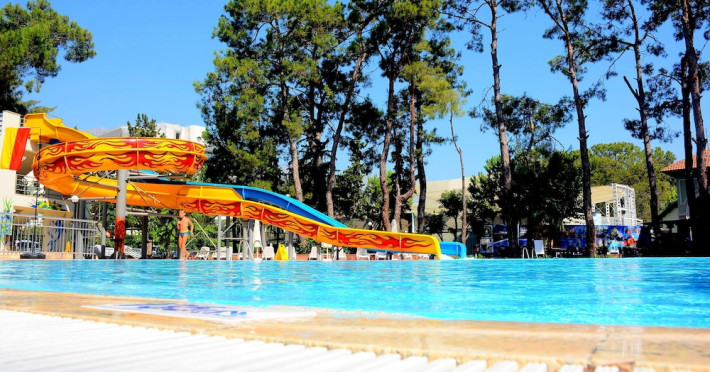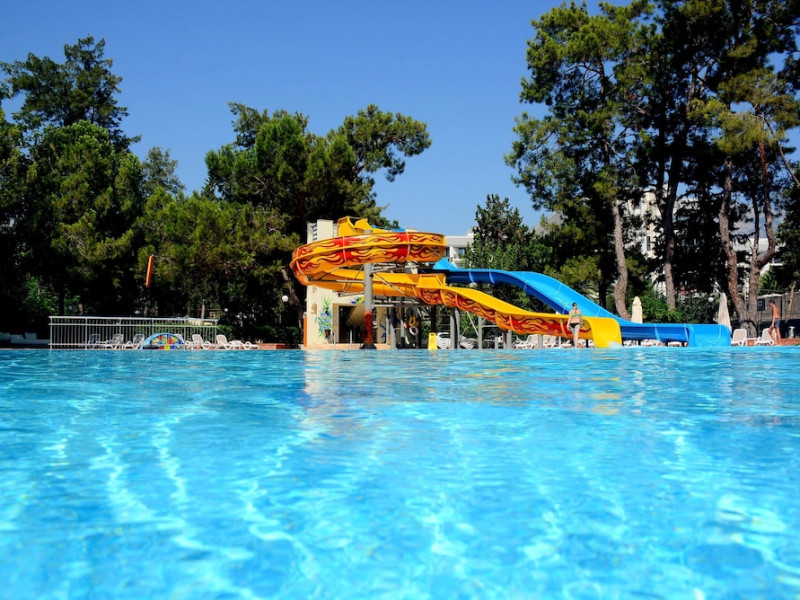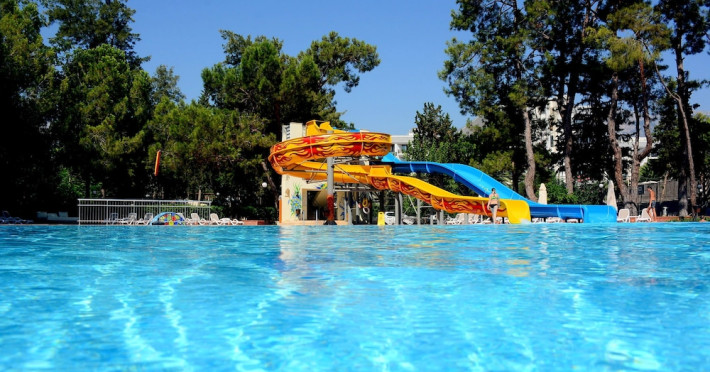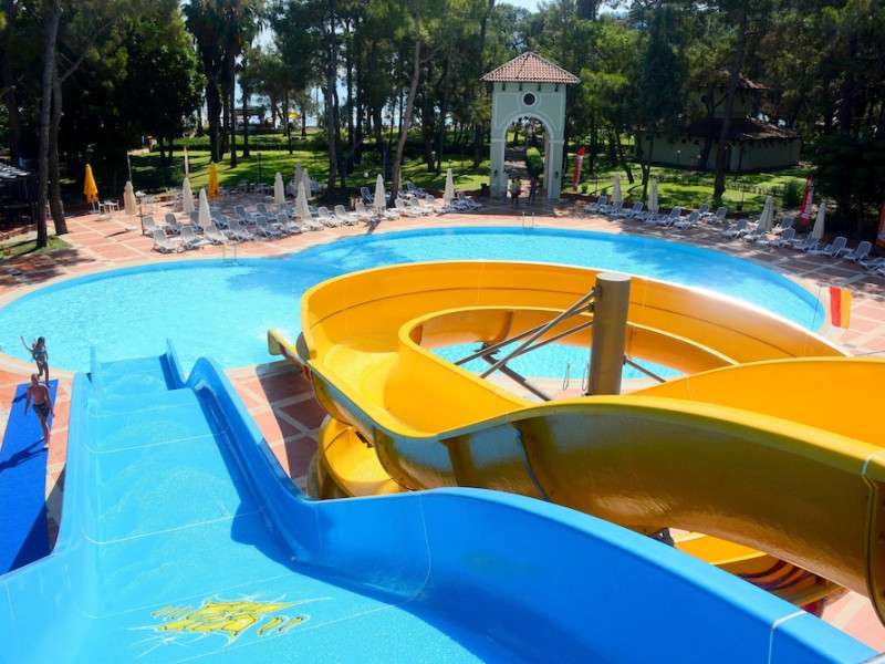 FACILITATI HOTEL: 8 piscine exterioare ( piscina principala - 450mp, 1.50 cm adancinme, piscina de relaxare - 315 mp, 1.50 cm adancime, 2 piscine pentru activitati /animatie, piscina cu 4 topogane, etc), piscina pentru copii,