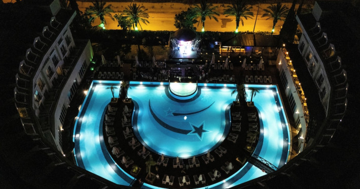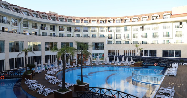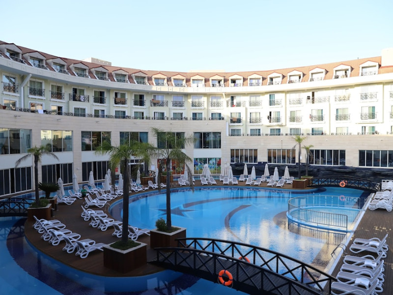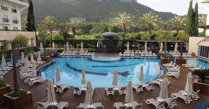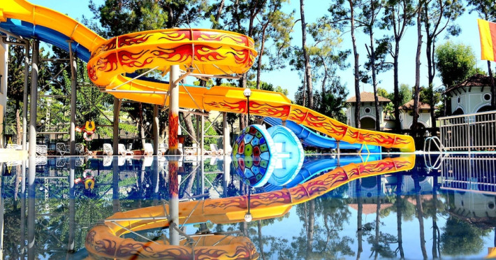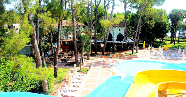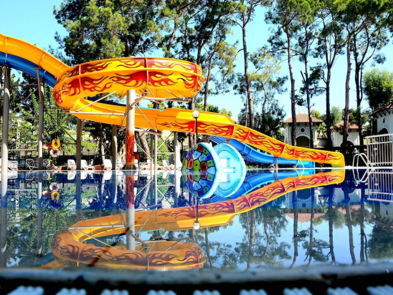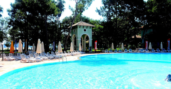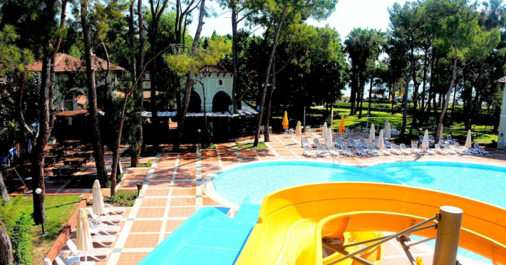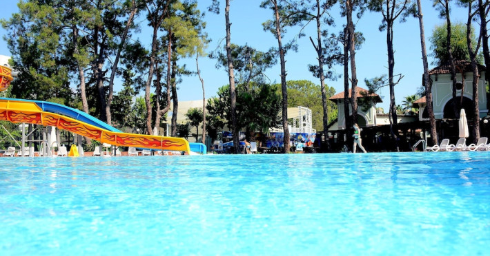 FACILITATI HOTEL: 8 piscine exterioare ( piscina principala - 450mp, 1.50 cm adancinme, piscina de relaxare - 315 mp, 1.50 cm adancime, 2 piscine pentru activitati /animatie, piscina cu 4 topogane, etc), piscina pentru copii,