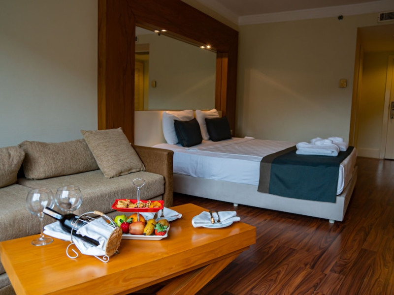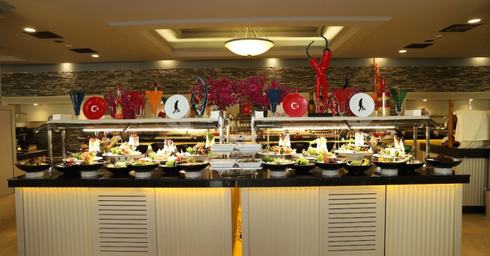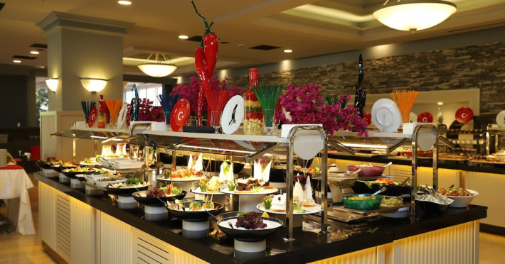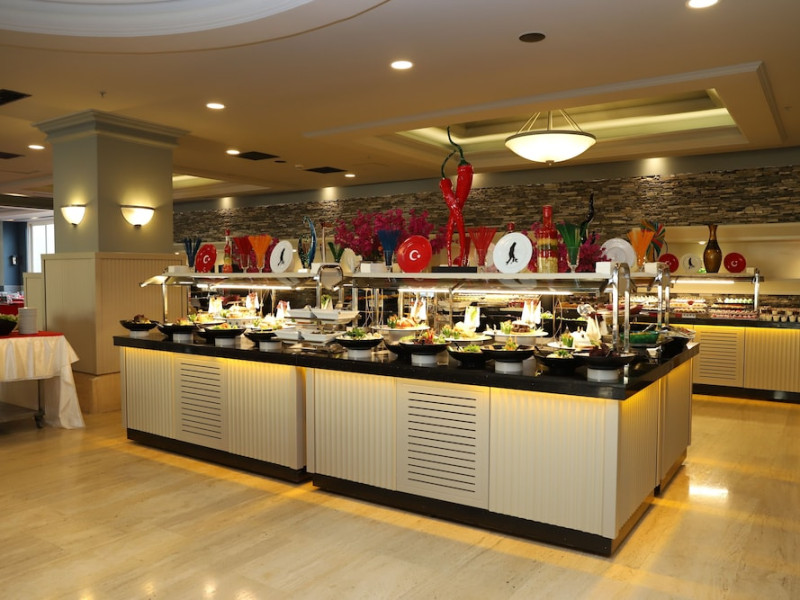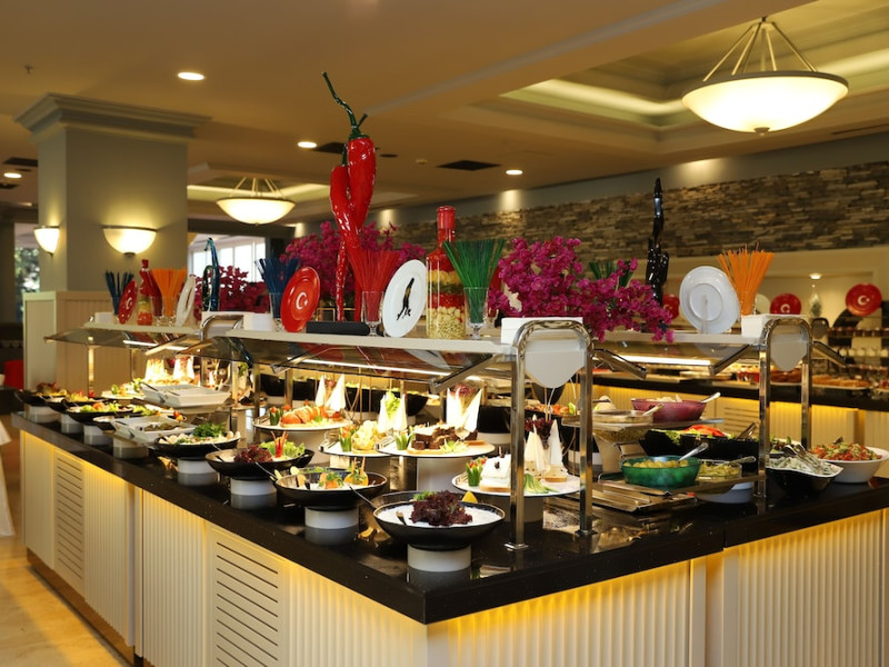 piscina interioara, fitness, biliard, mese de tennis, terenuri de tenis, basket, volei, fotbal, volei pe plaja, tir cu arcul, boccia, sporturi acvatice ( contra cost ), livrari pizza gratuit ( 22:00 - 00:00 ), room service gratuit ( 00:00 - 07:00 ),patiserie, 4 restaurante a la carte care necesita rezervare