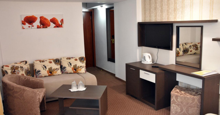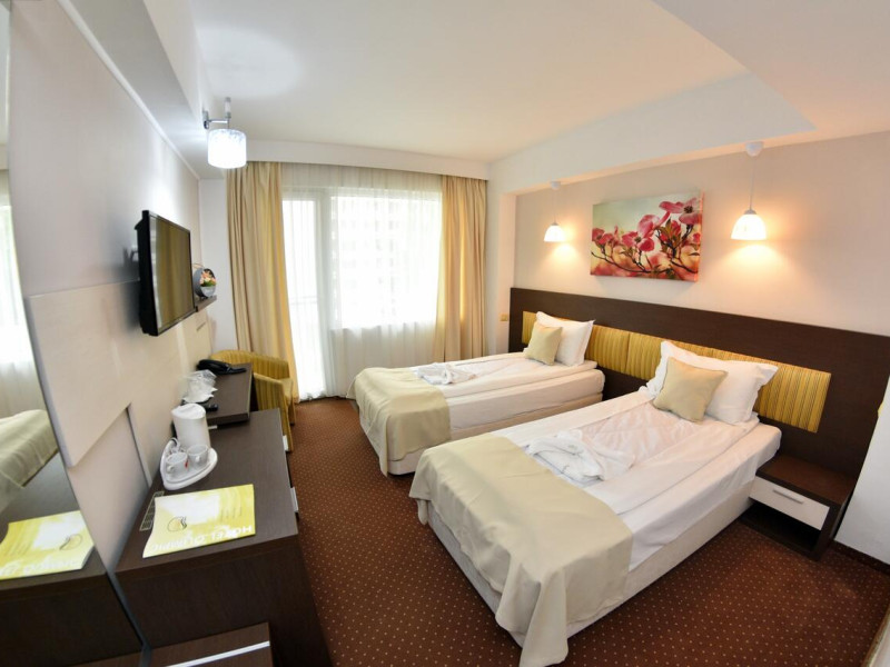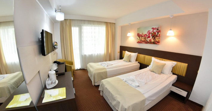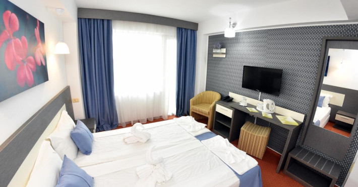 Hotel Olimpic este pozitionat in centrul statiunii Jupiter, in imediata apropiere a plajei. Facilitati hotel: 200 camere (duble twin/matrimoniale si family) si 8 suite dotate cu jacuzzi, balcon dublu cu vedere frontal la mare, restaurant, bar, terasa cu pergola retractabila si perete sticla ghilotina, cu vedere directa la mare , seif, lift, plaja proprie (dotata cu sezlonguri si umbrele -contra cost), 3 sali de conferinta cu spatiu modular de la 40 la 100 locuri, piscina adulti/piscina copii, bar piscina, loc de joaca pentru copii, parcare proprie, cu plata), acces internet gratuit, billiard, tenis de masa, air hokey, mese de foosball, jocuri electronice tip XBOX, sah, table, remy, darts, program distractiv pentru copii si face paiting se va desfasura la locul de joaca interior, aparate fitness, benzi de alergat, biciclete aparate multifunctionale, spectacole de dans si muzica pentru adulti si copii, numere de magie cu profesionisti in domeniu, parcare (contra cost). Facilitati camere: mobilier nou, sistem de acces pe baza de cartela magnetica, aer conditionat centralizat, internet wireless, TV LCD si cablu, minibar, telefon, seif, fierbator cafea/ceai, baie proprie cu cabina de dus, uscator de par si balcon(unele cu vedere la mare sau lac).