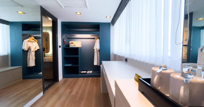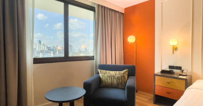 Camerele de la A-ONE sunt proiectate cu o atmosferă modernă și mobilier contemporan. Camerele spațioase au o fereastră din sticlă care separă baia de zona de dormit.