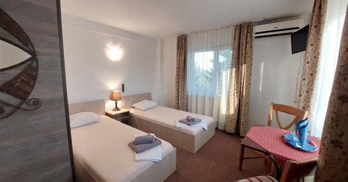 Pensiunea Boema Ploiesti este situata in cartierul Albert din Ploiesti si ofera camere moderne si facilitati exceptionale pentru a satisface gusturile celor mai exigenti dintre clienti, reprezentand astfel locul ideal pentru o vacanta de vis. Centrul orasului Ploiesti se afla la o distanta de 2 km de hotel, turistii putand vizita atractii precum Muzeul Judetean de Stiinte ale Naturii, Palatul Culturii sau Biblioteca Judeteana Nicolae Iorga. Clasificata la 3 stele, Pensiunea Boema Ploiesti pune la dispozitia oaspetilor 34 de locuri de cazare impartite in camere single/ matrimoniale/ twin, camere triple si suite, decorate cu dragoste in culori pastelate, in care se vor gasi saltele ergonomice, climatizare, televizor, incalzire proprie, , toate gandite pentru confortul oaspetilor nostri. Accesul Wi-Fi este gratuit in toata locatia. La Pensiunea Boema Ploiesti clientii beneficiaza de servicii exclusiviste si un design ingenios ce combina perfect luxul, confortul si rafinamentul. Parcarea este gratuita in limita disponibilitatii.