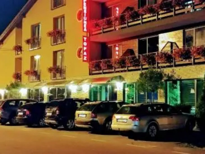 A great option for a journey on a budget - hotel Pensiunea Topaz is located in Baile Felix. This hotel is located in the city center. Before going to bed, you can take a walk and enjoy the main landmarks of the city.A great option for a journey on a budget - hotel Pensiunea Topaz is located in Baile Felix. This hotel is located in the city center. Before going to bed, you can take a walk and enjoy the main landmarks of the city.Spend an evening in a nice atmosphere of the bar. Want to be always on-line? Wi-Fi is available. Specially for tourists who travel by car, theres a parking zone. Here, you can treat yourself with water procedures as there will be a pool.If you want to make your journey even more comfortable, you can order a transfer. At the guests disposal, theres also a laundry, ironing and a safe-deposit box. The staff of the hotel will be happy to talk to you in English and Italian.Spend an evening in a nice atmosphere of the bar. Want to be always on-line? Wi-Fi is available. Specially for tourists who travel by car, theres a parking zone. Here, you can treat yourself with water procedures as there will be a pool.If you want to make your journey even more comfortable, you can order a transfer. At the guests disposal, theres also a laundry, ironing and a safe-deposit box. The staff of the hotel will be happy to talk to you in English and Italian.
