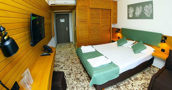 Profil: Familie si copii Localizare: Hotelul Poseidon este situat in partea de nord a statiunii Jupiter.fiind pozitionat perpendicular pe tarmul marii fiind parte a lantului hotelier Delta-California. Descriere: Poseidon Resort pune la dispozitie 225 camere duble. Camere: TV, telefon, internet wifi, minibar, aer conditionat, balcon. Toate camerele au baie proprie cu dus. Facilitati hotel: restuarant cu aer conditionat, restaurant terasa cu spectacole, pizzerie- cuptor cu lemne, restaurant italian, restaurant fishgrill, lobby bar, piscina adulti/copii, SPA, 3 sali de conferinte, acces internet, baby-land, plaja privata, parcare Concept Family All Inclusive 2023: - Acces si sezlong cu umbrela (in limita disponibilitatilor), la piscina hotelului;- Acces la sauna si jacuzzi (cu rezervare prealabila); - 2 sezlonguri cu umbrela incluse/camera pe plaja hotelului; - La sejur de minim 6 nopti, turistii beneficiaza gratuit de spectacole la Teatrul de Vara Jupiter: saptamanal - 3 spectacole (1 iulie-31 august), o intrare gratuita pentru 2 persoane/camera la Paradis Land- parc de aventura, o intrare gratuita pentru 2 persoane/camera la Jurasica Adventure Theme- parc tematic cu dinozauri si acces permanent in limita a 3h/zi la Galaxy WaterPark Jupiter - La sejur de minim 7 nopti, turistii beneficiaza de 1 cina a la carte cu specific pescaresc/sejur inclusa la restaurant FishGrill (pe baza de rezervare efectuata pe perioada sederii, in functie de disponibilitate) - NOU 2023! - Muzica bunae Da! / DJ de renumee Da! / Locatie: pe malul marii! / Bauturi: All Inclusive! / In fiecare seara la: DJ Live music Club CoHotels!; - Restaurant Poseidon (AI) - Orchestra live, solisti, trupe de dansatori, momente comice si de magie, animatori, intr-un cuvant spectacol seara de seara; - Restaurant Fish Grill a a-la-carte a In acordurile pianului, pe malul marii vei gusta cele mai savuroase specialitati de carne si peste. a serviciu cu plata - Internet Wifi gratuit in camere si in spatiile comune; Sistem de servire al meselor si bauturilor: In regim bufet: - mic dejun (07.30-09.30), - gustare (10.00-11.30), - pranz (12.30-15.00), - gustare (16.30-18.00) - cina (19.00-21.30). - Acestea vor fi servite in spatii special amenajate in cadrul unitatii hoteliere unde beneficiati de serviciile de cazare. Serviciile incep in prima zi de cazare cu cina. - Gustarea de dimineata se compune din urmatoarele produse: fructe, fursecuri, crostata, chec - Gustarea de dupa-amiaza se compune din urmatoarele produse: pizza, focaccia, inghetata, compot de fructe, fructe, etc. Bauturile alcoolice si non-alcoolice incluse se pot servi, astfel: - Bar restaurant in timpul programului de masa : apa, sucuri naturale si carbogazoase, cafea, ceai, bere draft, vin alb/roze/rosu draft, bauturi alcoolice. - Bar plaja in intervalul 08.00-19.00: apa, sucuri naturale si carbogazoase, cafea, ceai, bere draft. - Lobby Bar in intervalul 08.00-24.00: apa, sucuri naturale si carbogazoase, cafea, ceai, bere draft, vin alb/roze/rosu draft, bauturi alcoolice. - Bar piscina in intervalul 8.00-19.00: apa, sucuri naturale si carbogazoase, cafea, ceai, bere draft Bauturi alcoolice incluse: whiskey, vodka, vermut alb/rosu, crema de whiskey, gin, digestiv. Clubul Copiilor a TOTUL INCLUS pentru turistii Cohotels - 2023 Casa cu Povesti a pe scena de sub cupola teatrului din parcul de distractii aBaby Landa vor fi prezentate zilnic spectacole interactive de teatru pentru copii, sustinute de actori profesionisti. Centrul de Dans si Atitudine a cursurile de initiere in dans si expresie corporala vor fi insosite de cursuri Zumba pentru mamici si copii. Atelierul de Creatie a intr-un spatiu special amenajat, animatori profesionisti ii vor introduce pe copii in fiecare zi in tainele modelajului, picturii, artei origami. O expozitie va reuni, saptamanal, cele mai reusite creatii ale micilor cursanti. Scoala de Teatru a pentru toti copiii pasionati de actorie, o trupa de profesionisti va sustine zilnic cursuri de initiere in acest univers fascinant. Un spectacol saptamanal, va da ocazia punerii in practica a celor invatate. Plaja Copiilor a o intreaga plaja apartinand grupului Cohotels este amenajata cu tobogane si jocuri gonflabile. O echipa de animatori profesionisti se va dedica organizarii jocurilor si concursurilor pentru cei mici. Pe langa amenajarile de plaja, special pentru mamici, tatici si bunici vor fi puse la dispozitie jocuri de table si sah. Babyland (16.30-22.00) a Unicul parc de distractii interactive pentru copii din Sudul litoralului. Aici veti gasi instalate noile modele de tobogane, plase elastice si curse cu obstacole. In fiecare seara, petrecerile tematice si parada personajelor de poveste ii vor avea ca invitati speciali pe Batman, Spiderman, zana Ariel si mai vechii eroi din povestirile cu pirati si indieni. Gradinita cu program de babysitting (09.00-11.30 si 16.30-19.00) - locul in care iti poti lasa copilul sub atenta supraveghere a animatorilor hotelului. Pentru copii cu varsta cuprinsa intre 3 si 12 ani. *Consumatia de la barul Babyland-ului este contra cost. Facilitati copii: - Primul si al 2-lea copil intre 0 - 7 ani cazati in camera cu doi adulti, beneficiaza de gratuitate 100% la cazare si masa, cu fotoliu extensibil inclus (max 1 / camera). - Peste 7 ani achita supliment conform tarifelor, persoanele peste 18 ani achita loc intreg in camera; Informatii utile: - la sejur de minim 6 nopti, turistii beneficiaza gratuit de spectacole la Teatrul de Vara Jupiter: saptamanal - 3 spectacole (1 iulie-31 august), o intrare gratuita pentru 2 persoane/camera la Paradis Land- parc de aventura, o intrare gratuita pentru 2 persoane/camera la Jurasica Adventure Theme- parc tematic cu dinozauri si acces permanent in limita a 3h/zi la Galaxy WaterPark Jupiter - la sejur de minim 7 nopti, turistii beneficiaza de 1 cina a la carte cu specific pescaresc/sejur inclusa la restaurant FishGrill (pe baza de rezervare efectuata pe perioada sederii, in functie de disponibi