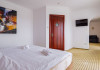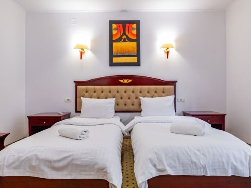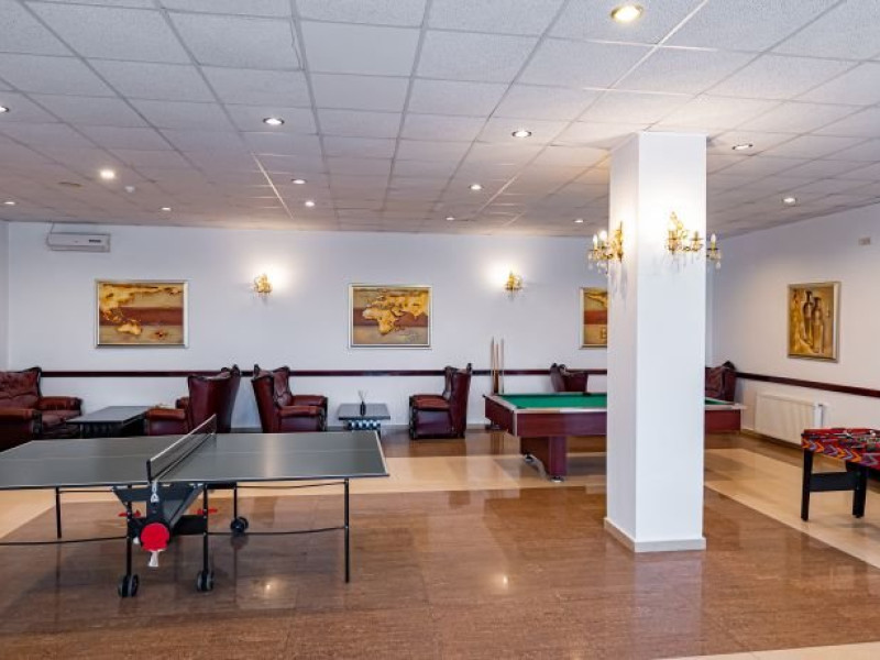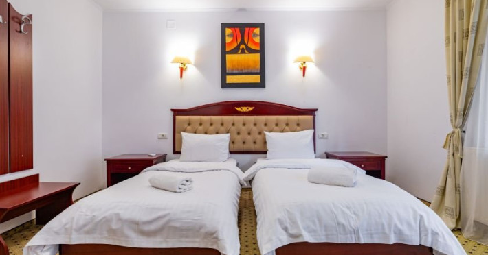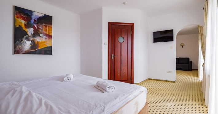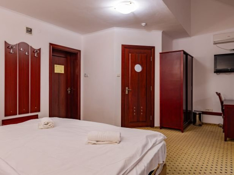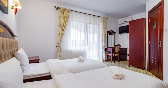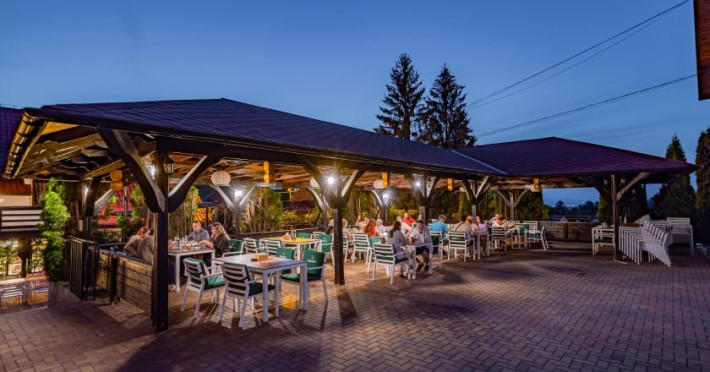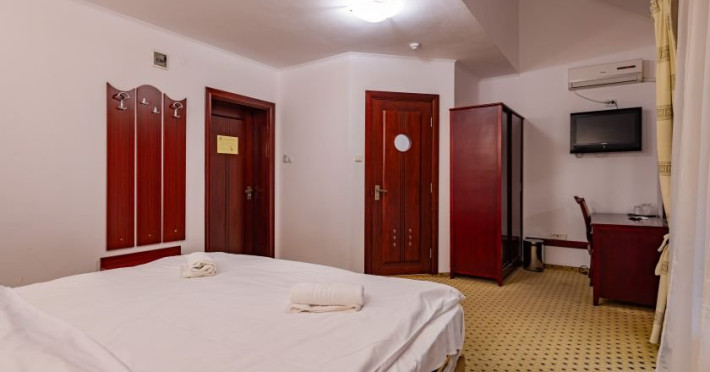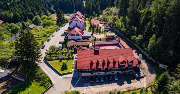 Situat la poalele padurii, in oraselul Sacele, la numai 6 km de Brasov. Hotelul dispune de 37 camere, restaurant si pub, parcare proprie gratuita, un centru SPA cu piscina interioara incalzita, jacuzii, piscina pentru copii, sauna umeda, sauna uscata, plaja exterioara, sala de fitness, salon de tratament si masaj, 2 sali de conferinta, La AQUATERRA SPA beneficiati de: piscina incalzita interioara pentru adulCai, piscina incalzita interioara copii, hidromasaj cu apa de izvor, plaja exterioara, sauna umeda, sauna uscata finlandeza cu sare de Himalaya. Servicii extra: sauna ruseasca - exterioara, ciubar exterior, masaje, tratamente Piscina este functionala tot timpul anului. Salon masaj si tratament- pe baza de programare, unde puteti beneficia de diverse tratamente sau masaje de relaxare. Accepta animale de companie de talie mica, cu pana la 10 kg, cu 50 lei/zi. Check-in: incepand cu ora 17:00 / Check-out: pana la ora 12:00. Din cadrul resortului turistic de 3 stele fac parte 3 sali de restaurant unde se pot organiza evenimente corporate dar si evenimente sociale. Hotelul dispune de:12 camere twin, 12 matrimoniale cu balcon, 4 matrimoniale fara balcon, 3 matrimoniale Economy, 6 junior suite. Toate camerele sunt dotate cu televiziunea prin cablu sau LCD, seif, internet Wi-Fi, baie prevazuta cu cabina de dus, articole de toaleta, uscator de par, halat de baie. Dubla Economy - are o suprafata de 16 mp, dispune de pat de 1,50 m latime si balcon Dubla twin/ matrimoniala - are o suprafata de 18 mp, dispune de balcon Dubla matrimoniala fara balcon - are o suprafata de 22 mp, dispune de baie cu cada cu hidromasaj. Junior Suia - are o suprafata de 24 mp, formata din living spatios cu canapea extensibila si un dormitor dotat cu un pat matrimonial; dispune de balcon.