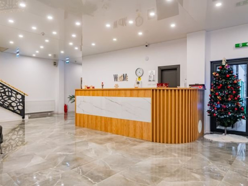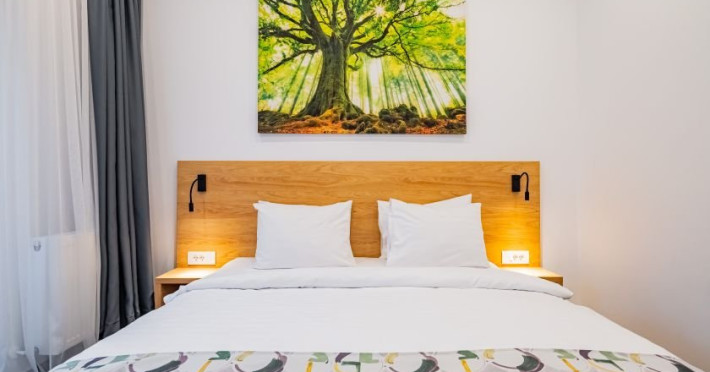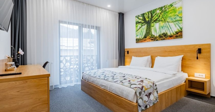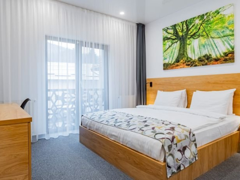 DOTARI CAMERE: Camerele au o suprafata de aproximativ 13 mp, sunt echipate cu TV, birou si seif, baie cu dus, uscator de par, produse cosmetice, halate de baie di papuci, internet. Capacitate de cazare/camera: maxim 2 adulti si 1 copil in pat cu parintii.
