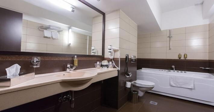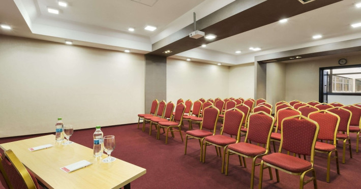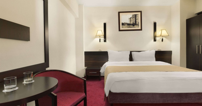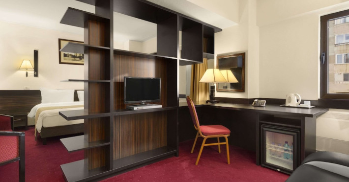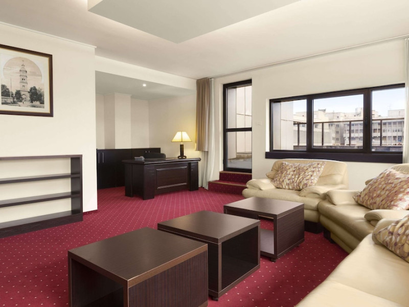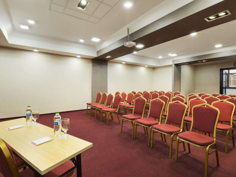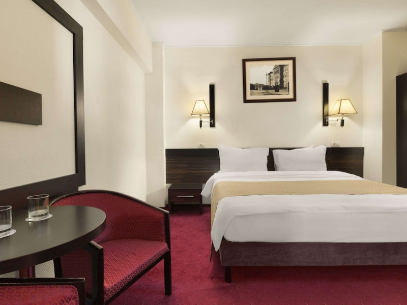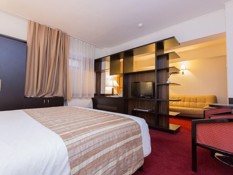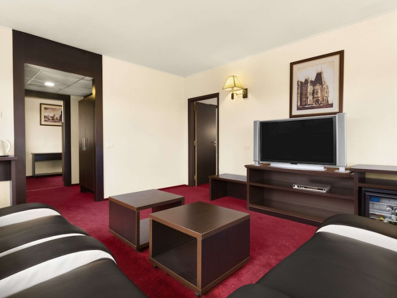 The Ramada City Center Iasi can be found in a quiet location in the heart of the city, just across the Shopping Center Complex Palas. It is only 15 minutes away from the airport and 7 minutes from main train station. Relax in tastefully furnished, air-conditioned rooms, all featuring LCD TVs, free internet access, an electronic safe, a direct-dial telephone, a mini-bar and many more amenities. For lunch and dinner the Cosmopolitan Restaurant of the Ramada City Center Iasi is the perfect place for dining in style. Savor inventive dishes of the Romanian and international cuisine in an elegant setting. During the warmer months you can sit in the summer garden or on the charming covered terrace. The restaurant is also suitable for events of up to 200 people. The Espresso Caffe can be found in the lobby. It is perfect for a quick business lunch, or for enjoying a coffee or a drink. A wide range of fully equipped conference rooms of various sizes are available for corporate and private events. In the vicinity of the Ramada City Center hotel you will find many of the attractions of this cultural capital of Romania. Visit the Culture Palace, the nearby Byzantine-style Trei Ierarhi church, the Metropolitan Cathedral, the Luceafarul theater as well as various shopping centers.WiFi is available in the hotel rooms and is free of charge. Private parking is available on site (reservation is not possible) and costs RON 25 per day. Pets are not allowed. Children of all ages are allowed. Children 11 and under stay for free when using an existing bed. You havent added any cribs. You havent added any extra beds.Checkin Time: 15:00Checkout End Time: 12:00