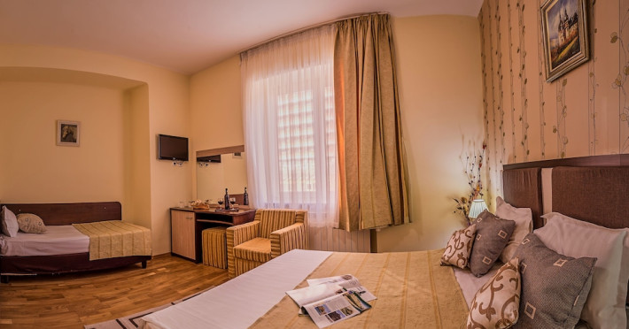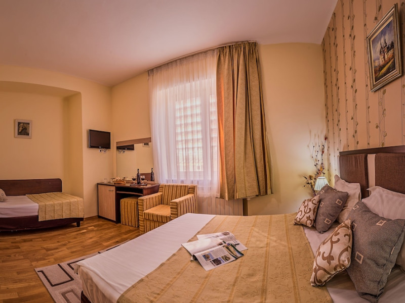 Hotel Rina Cerbul is located in the center of Sinaia, 1640 feet from the train station and the gondola elevator. It offers free WiFi. The rooms at the Rina Cerbul Hotel feature light wooden furniture, parquet floors, a TV, a refrigerator, and a bathroom. A continental breakfast and Indian dishes can be served at Ramayana Cafe & Restaurant, directly connected to the hotel. There you can also sip the tea of your choice from a rich collection of assortments, or relax with a flavored hookah. You can also enjoy Rina Sinaias restaurant and wine cellar. A shopping center is 656 feet away from Hotel Rina Cerbul. The property is also 1.2 mi from Peles Castle.No special conditions apply for groups. WiFi is available in all areas and is free of charge. Private parking is available on site (reservation is not needed) and costs RON 20 per day. Pets are not allowed. Children of all ages are allowed. Children 3 and under stay for free when using an available crib. Children 5 and under stay for free when using an existing bed. Children from 6 to 12 years old stay for 40Â lei per person, per night when using an existing bed. People no matter the age stay for 40Â lei per person, per night when using an available extra bed. Any type of extra bed or crib is upon request and needs to be confirmed by management. Additional fees are not calculated automatically in the total cost and will have to be paid for separately during your stay.Checkin Time: 15:00Checkin End Time: 00:00Checkout From: 07:00Checkout End Time: 12:00Hotel important information: Please inform Hotel Rina Cerbul of your expected arrival time in advance. You can use the Special Requests box when booking, or contact the property directly using the contact details in your confirmation. Guests are required to show a photo ID and credit card upon check-in. Please note that all Special Requests are subject to availability and additional charges may apply. Please note that the property accepts holiday tickets as a payment method. Please note that this property uses an exchange rate that may vary with +2% from the Romanian National Bank exchange rate. When booking 3 rooms or more, different policies and additional supplements may apply. The property will contact you after booking to provide more details.