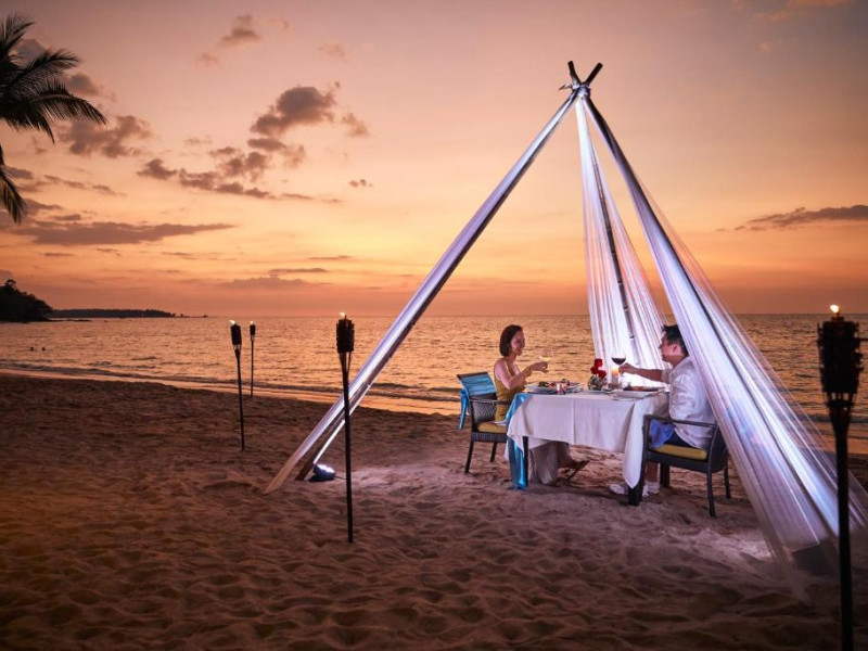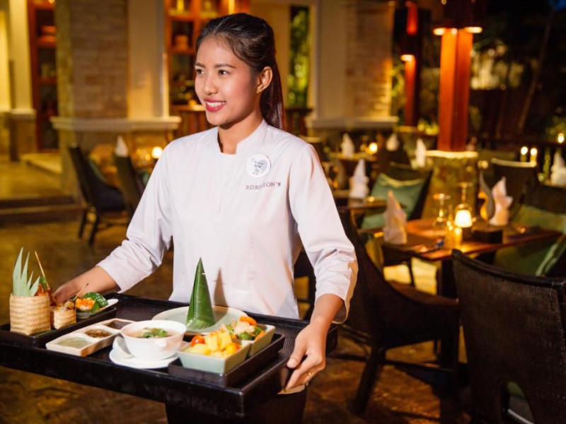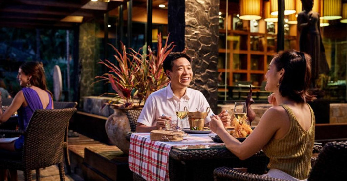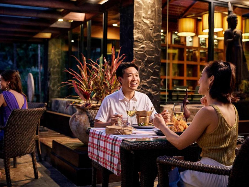 Punctele de atracție ale mesei includ cocktailuri răcoritoare la Vista, care oferă vedere panoramică la ocean și la terenurile stațiunii. Specialități thailandeze pot fi savurate la restaurantul Baan Thai.