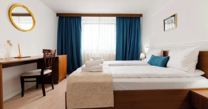 A great hotel to have a nice rest before long walks around the city. Hotel Hotel Royal Plaza is located in Timisoara. This hotel is located 2 km from the city center.A great hotel to have a nice rest before long walks around the city. Hotel Hotel Royal Plaza is located in Timisoara. This hotel is located 2 km from the city center.Spend an evening in a nice atmosphere of the bar. Its time to have a nice meal! Stop by the restaurant. Want to be always on-line? Wi-Fi is available. If you travel by car, theres a free parking zone.If you travel by car, theres a parking zone. For participants of business meetings, there is a conference hall and meeting and presentation facilities. Want to have an excursion? Consult the tour assistance desk of the hotel. For the free movement around the city, the hotel offers a transfer for you.Accessible for guests with disabilities: the elevator helps them to go to the highest floors. At the guests disposal, theres also a laundry, dry cleaning, ironing, car rental and a safe-deposit box. The staff of the hotel will be happy to talk to you in English, Italian and French.Spend an evening in a nice atmosphere of the bar. Its time to have a nice meal! Stop by the restaurant. Want to be always on-line? Wi-Fi is available. If you travel by car, theres a free parking zone.If you travel by car, theres a parking zone. For participants of business meetings, there is a conference hall and meeting and presentation facilities. Want to have an excursion? Consult the tour assistance desk of the hotel. For the free movement around the city, the hotel offers a transfer for you.Accessible for guests with disabilities: the elevator helps them to go to the highest floors. At the guests disposal, theres also a laundry, dry cleaning, ironing, car rental and a safe-deposit box. The staff of the hotel will be happy to talk to you in English, Italian and French.Heres what youll find in the room to have a rest after a long day: a shower, a TV and a mini-bar. Please note that the listed services may not be available in all the rooms.Heres what youll find in the room to have a rest after a long day: a shower, a TV and a mini-bar. Please note that the listed services may not be available in all the rooms..1 EUR not included 30 per room per stay.EUR airport not included 35 one way