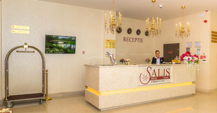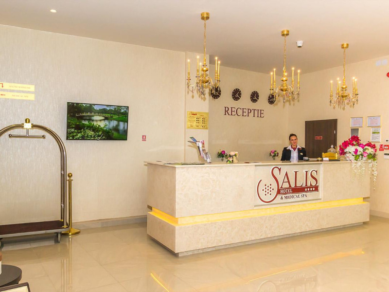 Location: Salis Hotel Medical SPA is situated in Turda, at 300m from the saline. Hotel facilities: 24 rooms, restaurant (150 spots), terrace, bar, fax/copy machine, safe box, elevator, beauty salon, facilities for people with disabilities, laundry/ironing services, Spa Center (indoor swimming pool, Jacuzzi with salt water, dry sauna, hammam baths), Wi-Fi, 24h reception, playground for children, conference room, concierge, shoe polisher, room service, parking lot (within the limit of available spots). Room facilities: AC, phone, TV, minibar, balcony, safe box, private bathroom, hair dryer, bathrobe, slippers, toiletries, Wi-Fi.