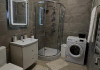 Baia este un exemplu de functionalitate si stil. Combinatia dintre cada moderna si masina de spalat ofera confort si utilitate. Detaliile, cum ar fi chiuveta, oglinzile sau finisajele, sunt alese cu grija, creand un spatiu estetic placut si practic.