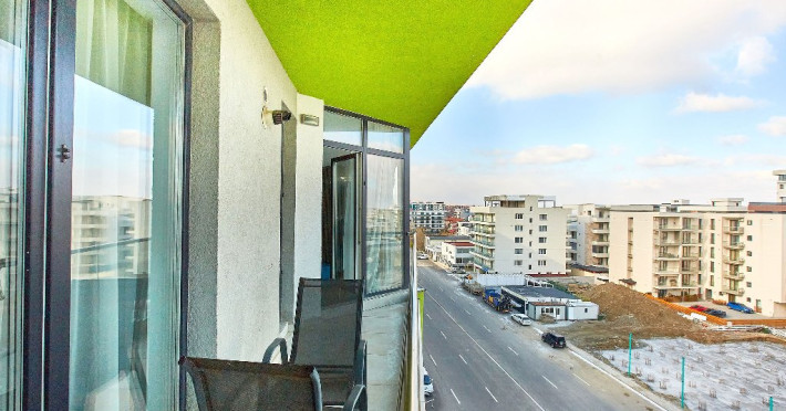 Balconul este locul perfect pentru a te relaxa si a te bucura de frumusetea marii. Privelistea panoramica catre mare ofera momente de liniste si contemplare, fie ca alegi sa te bucuri de o cafea de dimineata sau de un apus de soare. Mobilierul de pe balcon este confortabil si invitational, fiind locul perfect pentru a te retrage cu o carte buna sau pentru a savura briza marii.