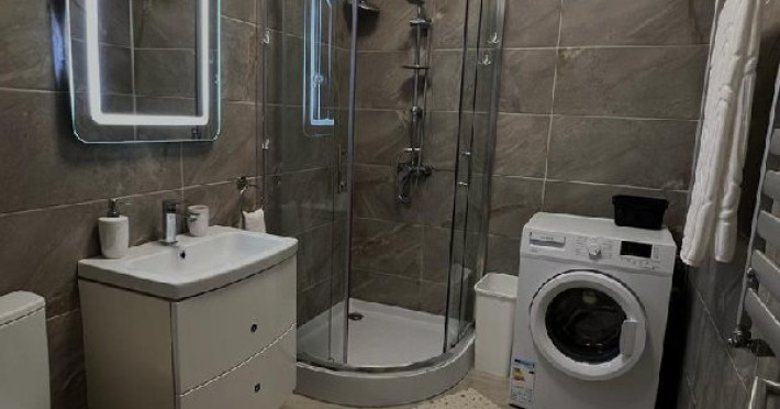 Baie: Baia, cu un design curat si modern, este dotata cu o cabina de dus spatioasa si masina de spalat. Materialele de calitate si detaliile cromatice confera un aspect elegant si functional, asigurand in acelasi timp toate necesitatile zilnice.